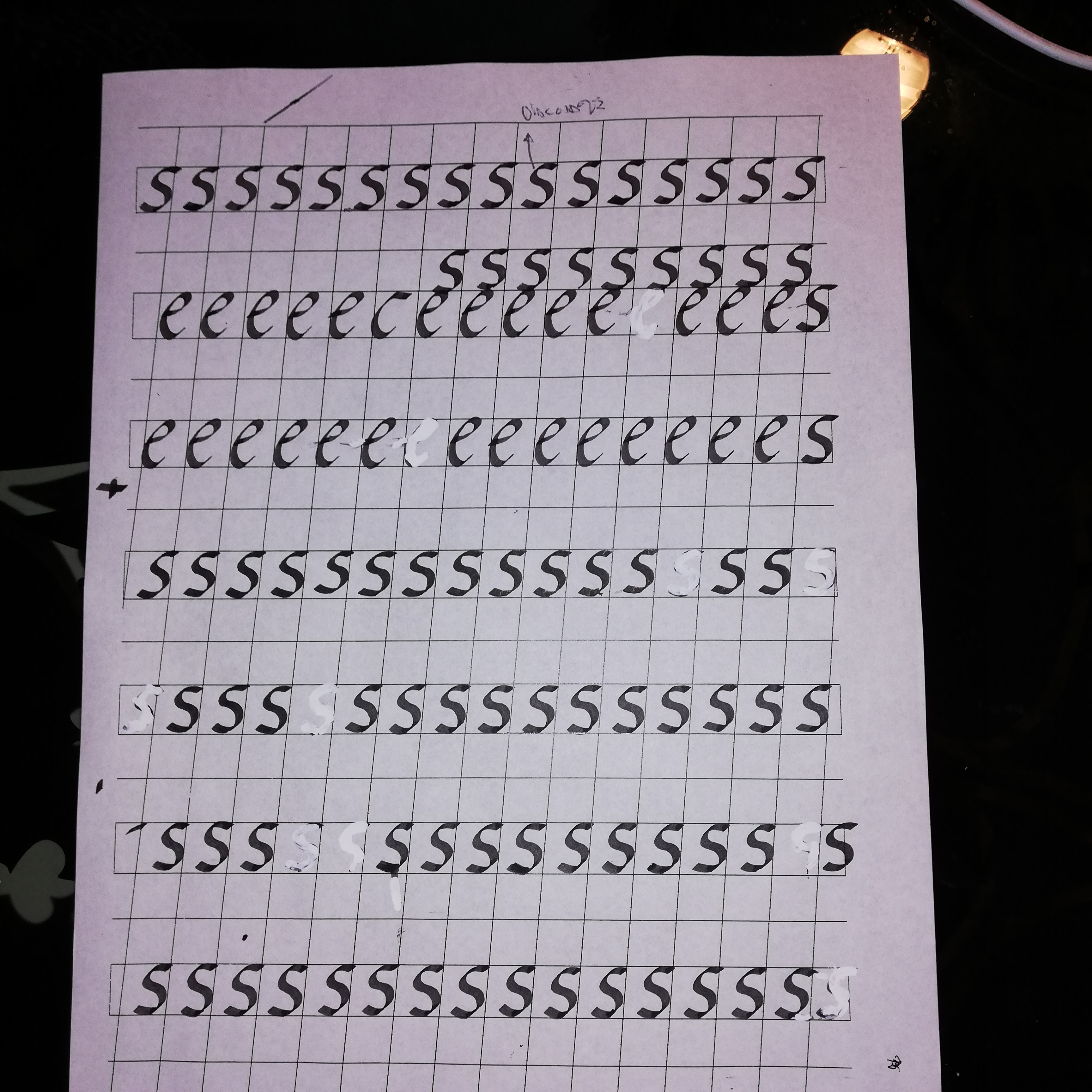 Esercizi lettera s fatta in 3 pezzi secondo rynold prime due line penna platignum vintage left hand 1963...altre righe osmiroid left hand... Alcune s le ho fatte piu piccole apposta....