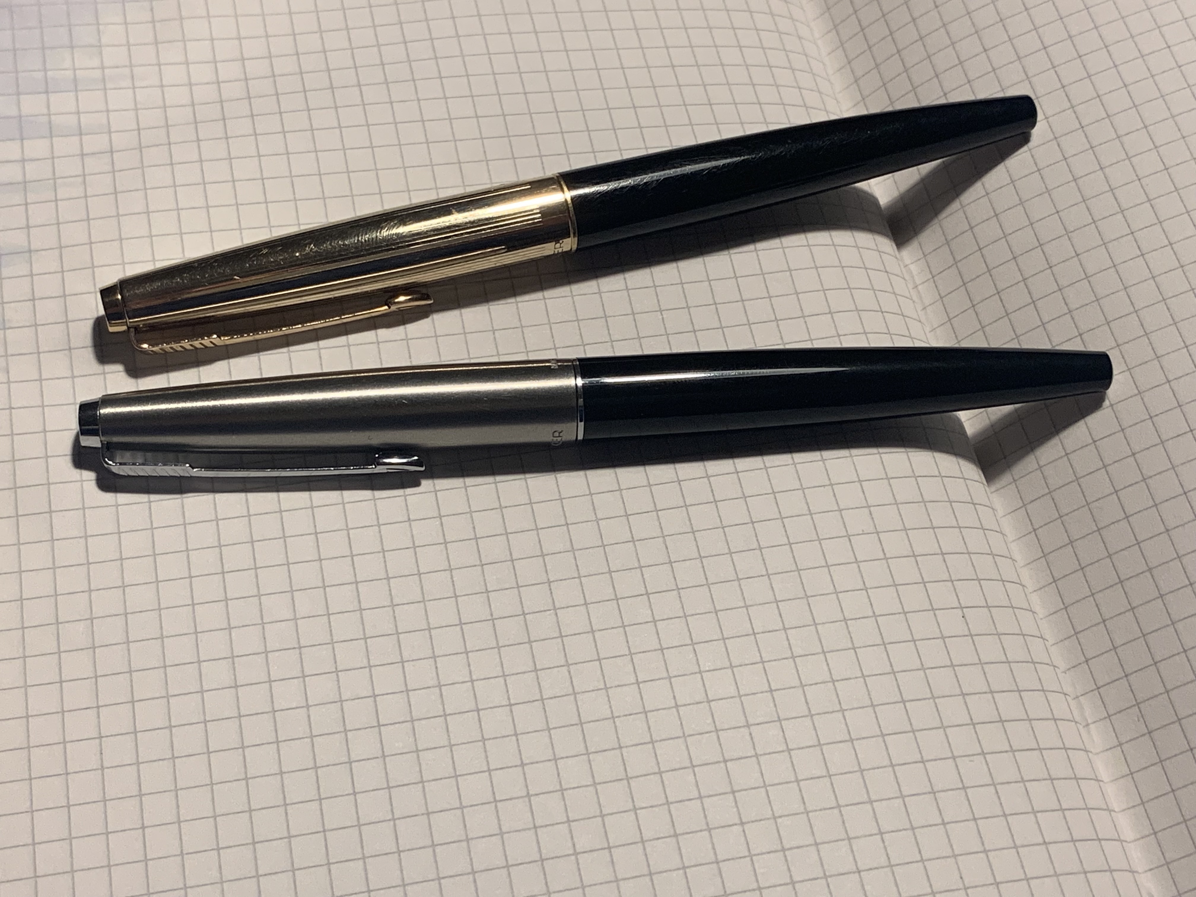 Ciao a tutti, mi accodo al thread, al momento possiedo due Parker 45 con pennino in oro, una Made in France blu con numero di serie 10000 (tondo!), sul conduttore è indicata la lettera X (quindi extrafine), ma di fatto un F.