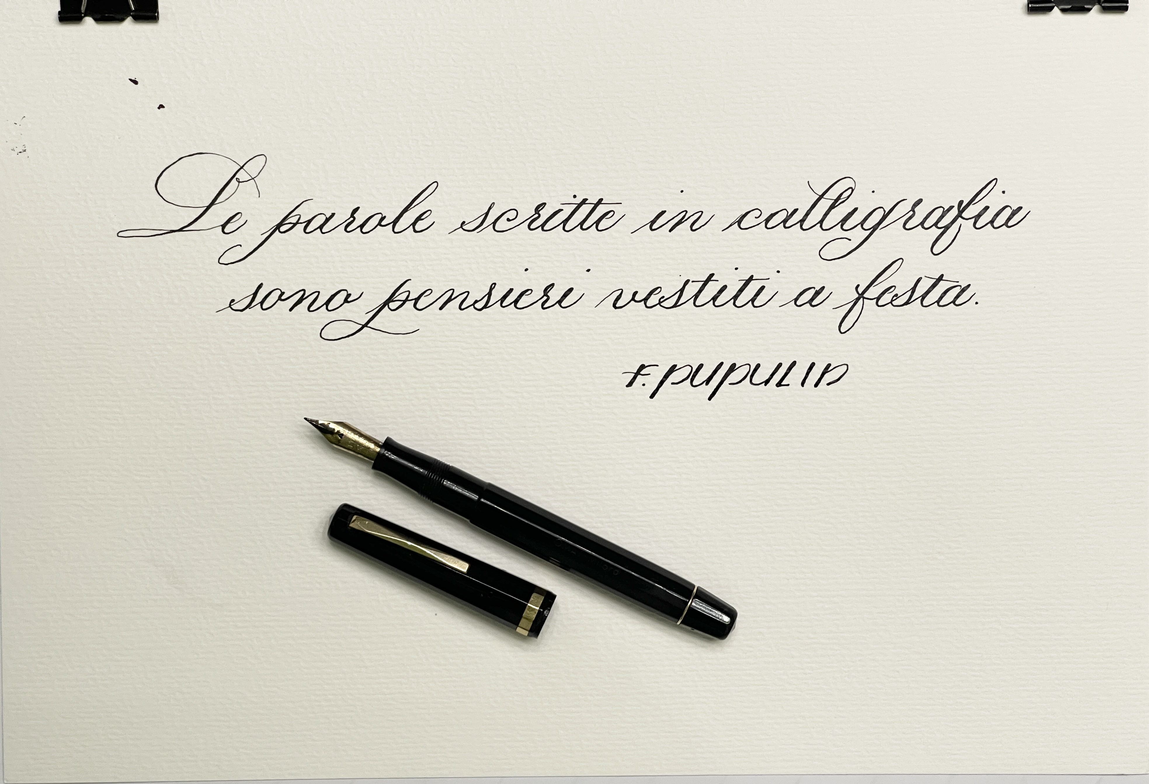 Non entro nel merito delle rese delle stilografiche usate (non ne ho dimestichezza) ma sulla costruzione delle lettere e sull'effetto d'insieme.