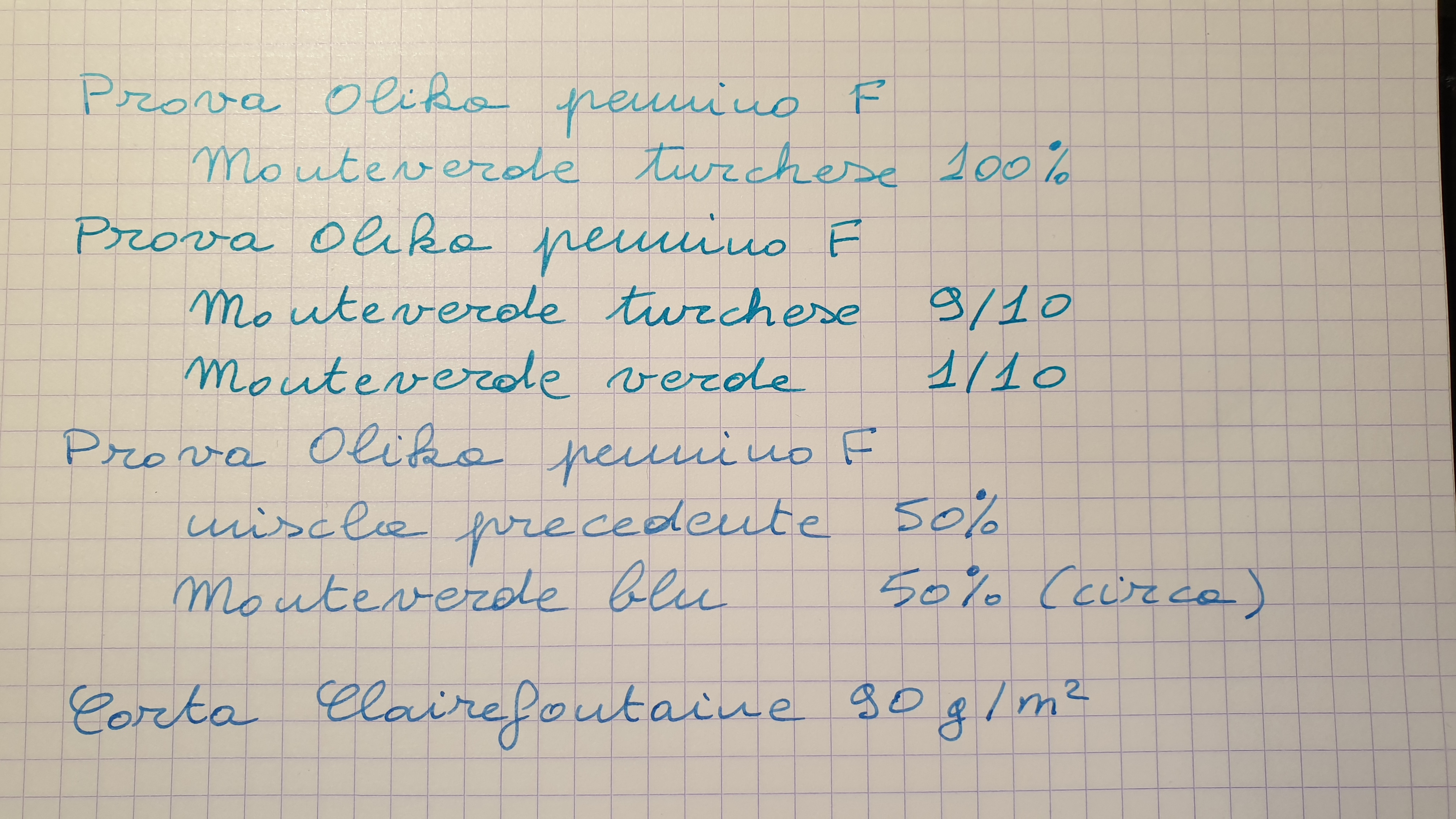 Una miserrima Olika con una miscela di inchiostri (circa 1/2 di turchese, 1/2 di blu e una goccia di verde) tutti Monteverde che doveva essere un esperimento.