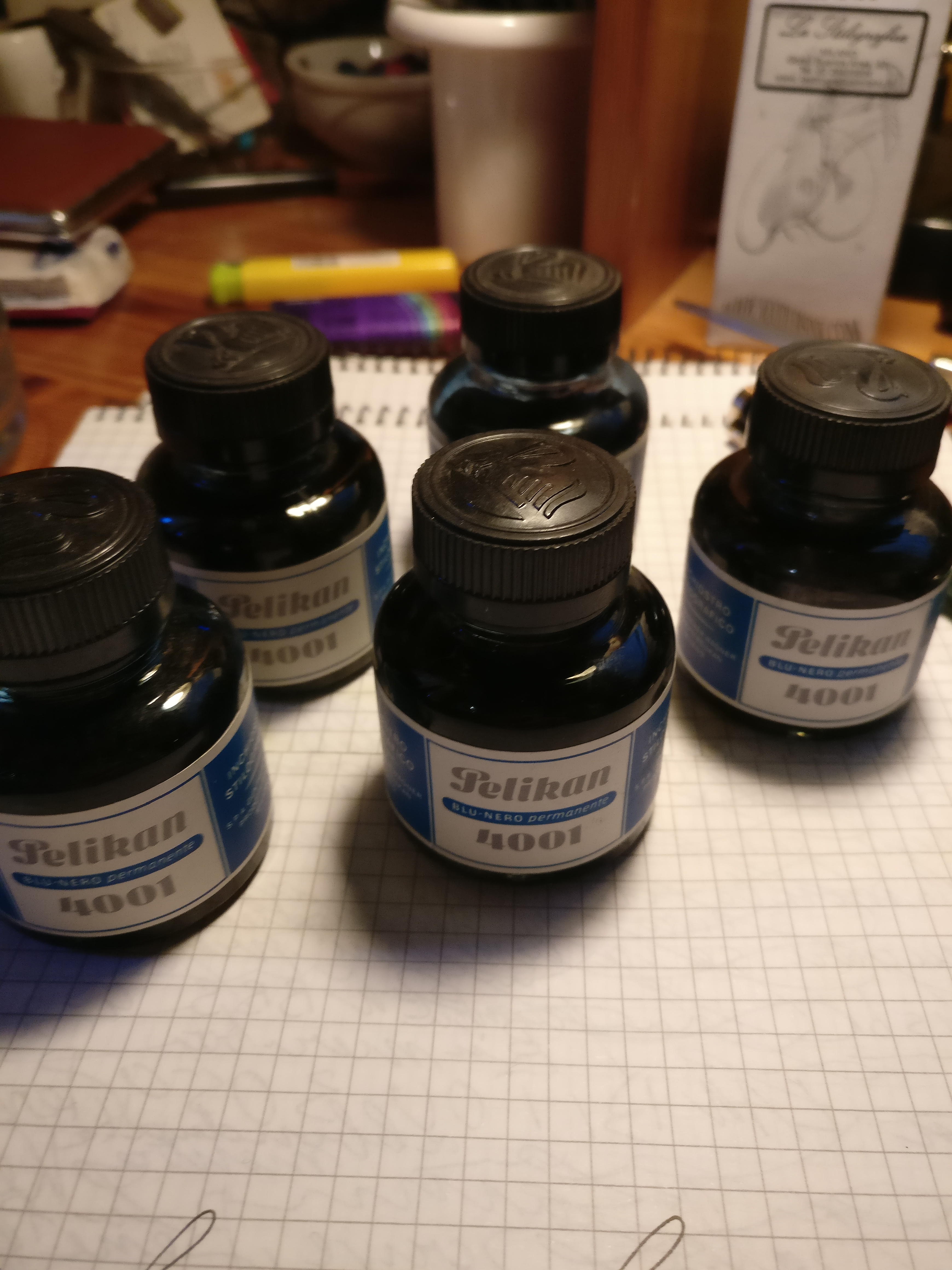 Forse ho recuperato una bottiglia di Pelikan Blue Black dello stesso periodo tuo ad un prezzo umano ed ancora sigillata....la saga infinita del blue black Pelikan...Monet63 ha scritto: ↑venerdì 31 marzo 2023, 12:17Secondo me dipende dai lotti, almeno per quanto concerne quello attuale. Ne ho avuti di molto belli, che mantengono una decisa sfumatura blu, così come di grigiastri/verdastri.Keplero ha scritto: ↑venerdì 31 marzo 2023, 10:27 Credo anch'io, il blue black come ferrogallico funziona ma a costanza cromatica (per le prove che stò facendo) non mi pare costante e sto raccogliendo pareri contrastanti, a chi resta bello blu, a chi ingrigisce nel tempo come a me, chi riesce a correggerlo con buoni risultati, chi come me ha risultati scadenti... se ti vuoi comprare un boccino per giocarci ok... ma consigliarti di prenderne un lt non me la sento...