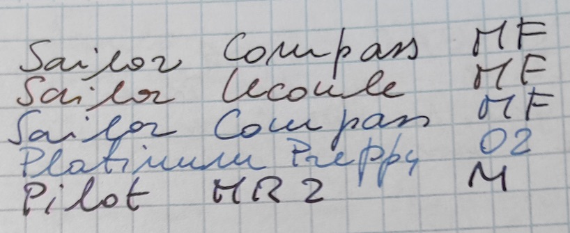 In realtà i pennini Sailor sono molto "rigidi" e l'MF in acciaio delle loro "economiche" scrive grosso come un ago e con la precisione di un bisturi.