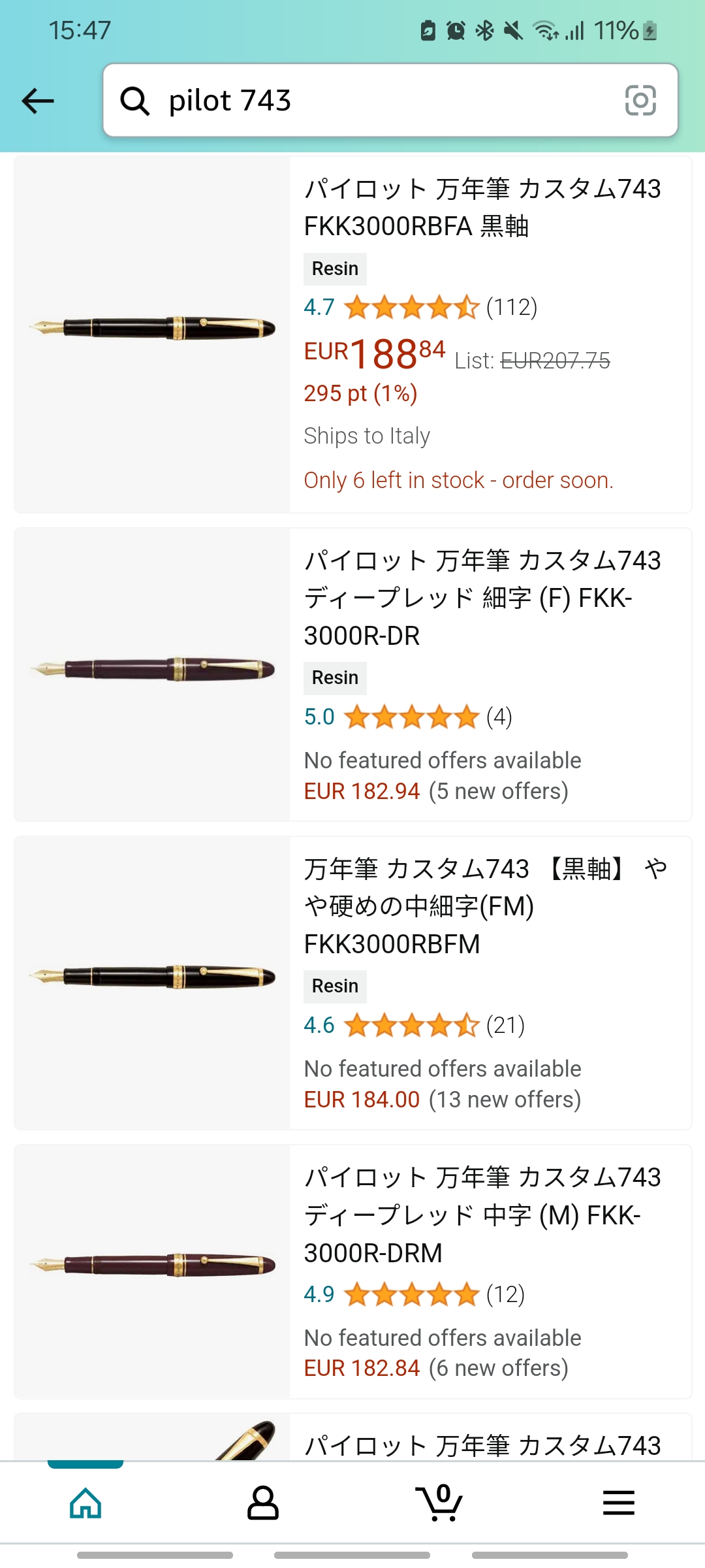 Nella pagina di ricerca però, quando scrivo solamente "pilot 743", sono presenti tutte le opzioni di penne con i vari codici diversi che dovrebbero corrispondere ai diversi tipi di pennino in teoria e come potete vedere le immagini sono sempre le stesse...