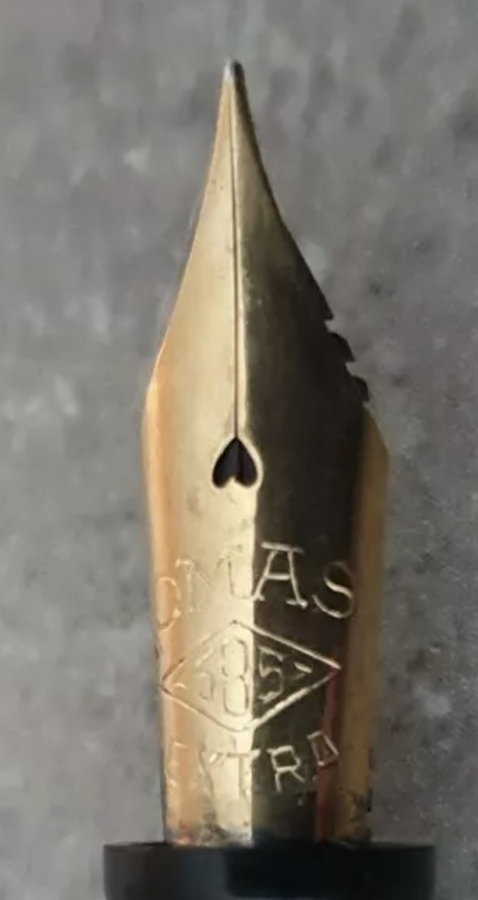 pennino in acciaio M, molto bello, scorrevole con tratto più F che M (è vero che le Conklin vengono costruite in Toscana e poi inviate oltre oceano?)