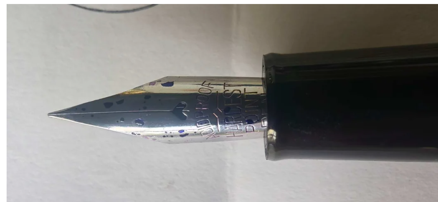 Il pennino (acidproof / hardest point) ripreso nella fotografia sopra il tuo messaggio, per forma, incisioni e decori è un tipico pennino prodotto in Giappone anni addietro (ma forse ancora oggi). Attualmente è in asta su una piattaforma giapponese (ne vendono un lotto da 700 e passa pezzi), ma non disponibile per chi arriva da paesi fuori dal Sol Levante.