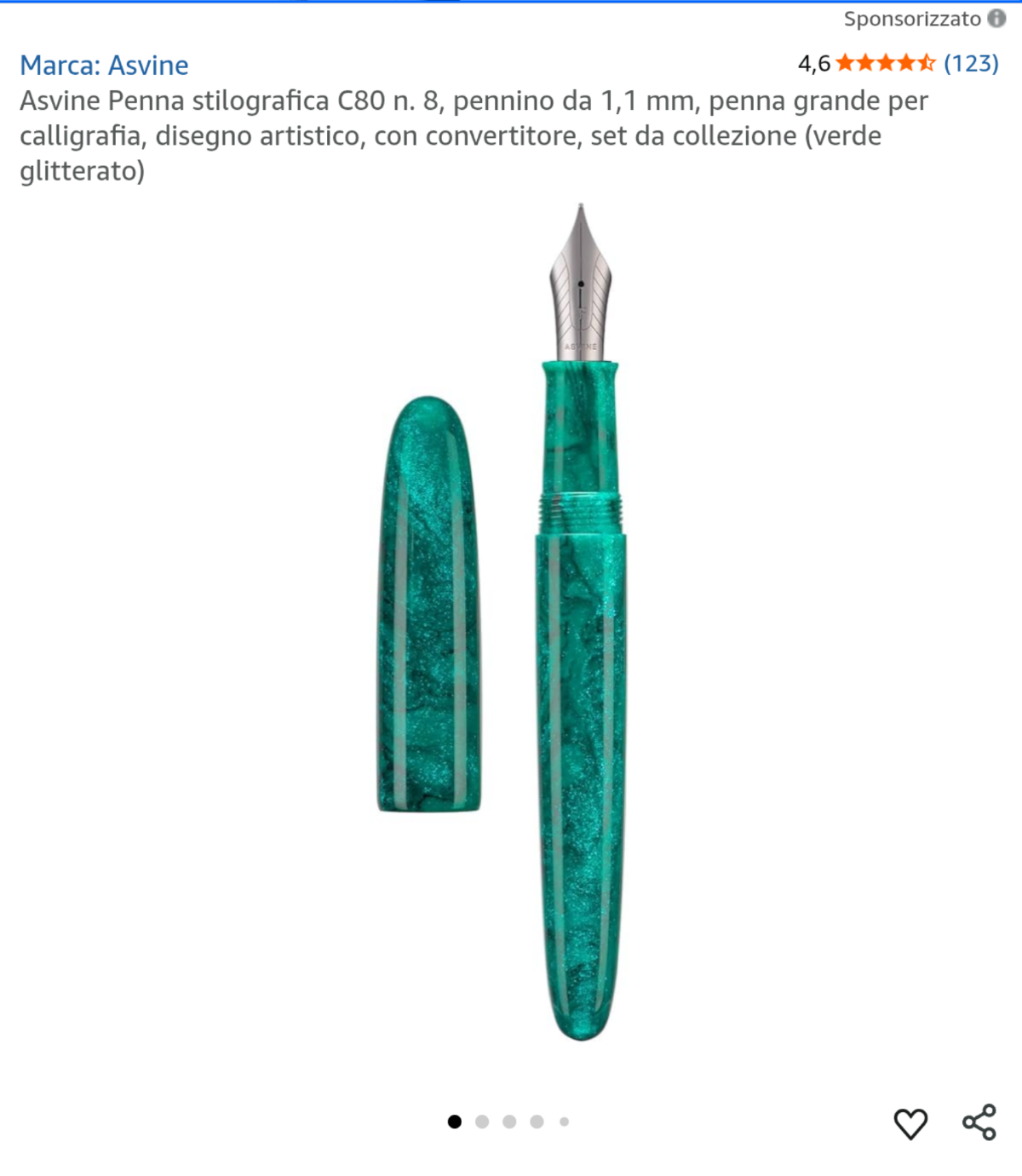 Una piccola nota su una delle livree, si presenta con una striscia bianca consistente: https://www.reddit.com/r/fountainpens/c ... svine_c80/. La mia ha lo stesso difetto, me la sono tenuta lo stesso.ASTROLUX ha scritto: ↑venerdì 26 settembre 2025, 18:35 Apparsa sul grande market online americano: Asvine C80