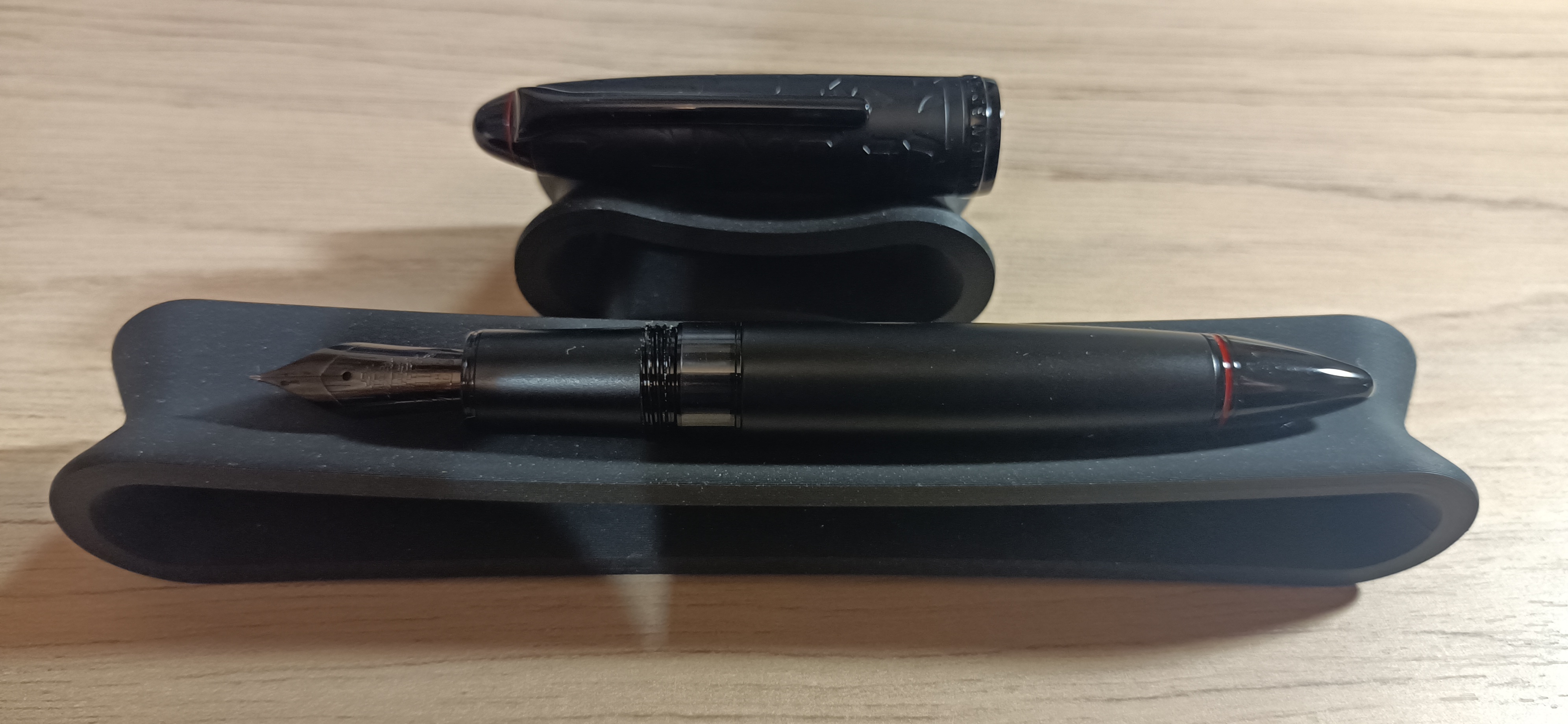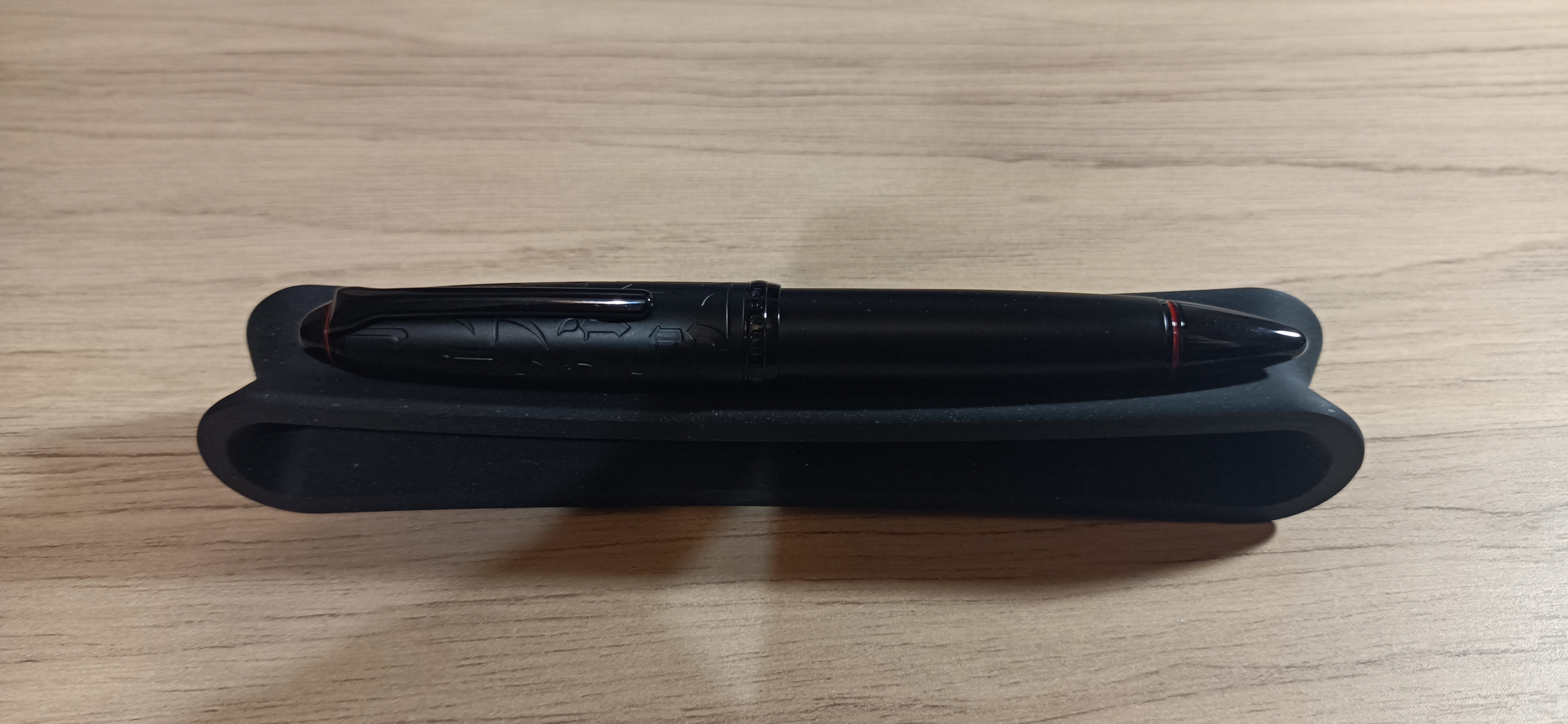 P.S. date le mie scarse conoscenze in storia della stilografica, non ho capito se questo design "all black" con anellini rossi sia "originale" (anche se nel mondo delle penne di cose mai viste ce ne sono ben poche) oppure la ripresa pedissequa di qualcosa (una edizione limitata della MB Starwalker? L'edizione limitata Aurora Ipsilon Cento? Un vecchio modello Cross che mi pare di aver sentito da qualche parte?). Di certo il cappuccio con incisi i radicali dei caratteri cinesi è originale e per me bellissimo (spiegherò nella recensione cosa sono i "radicali" dei caratteri).