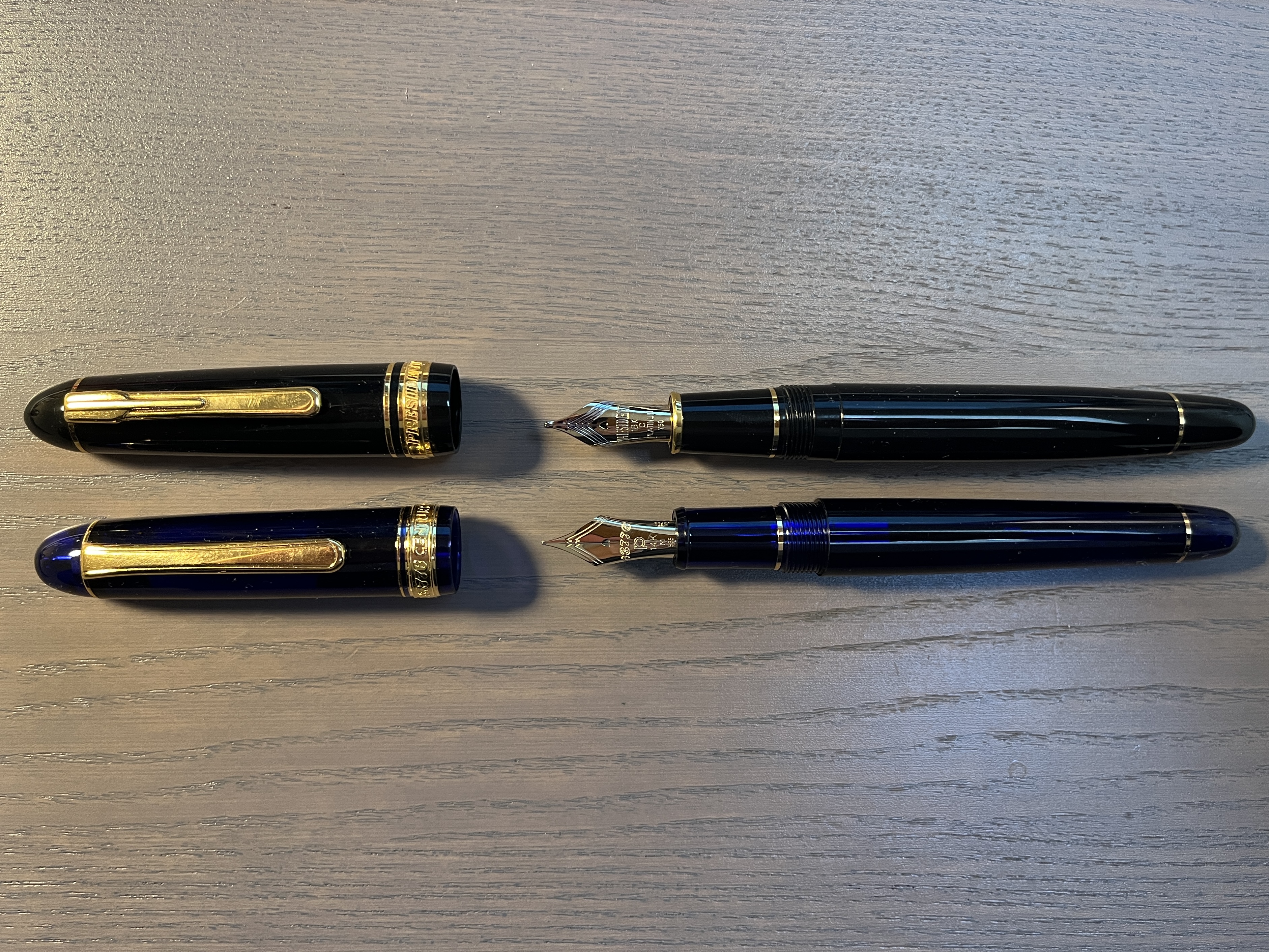 E' una versione un pochino più premium della 3776, di cui è poco (ma poco) più grande. Decisamente più bella la clip, che ha un vago rimando art decò. Il pennino è 18K e non 14K ed è completamente diverso.