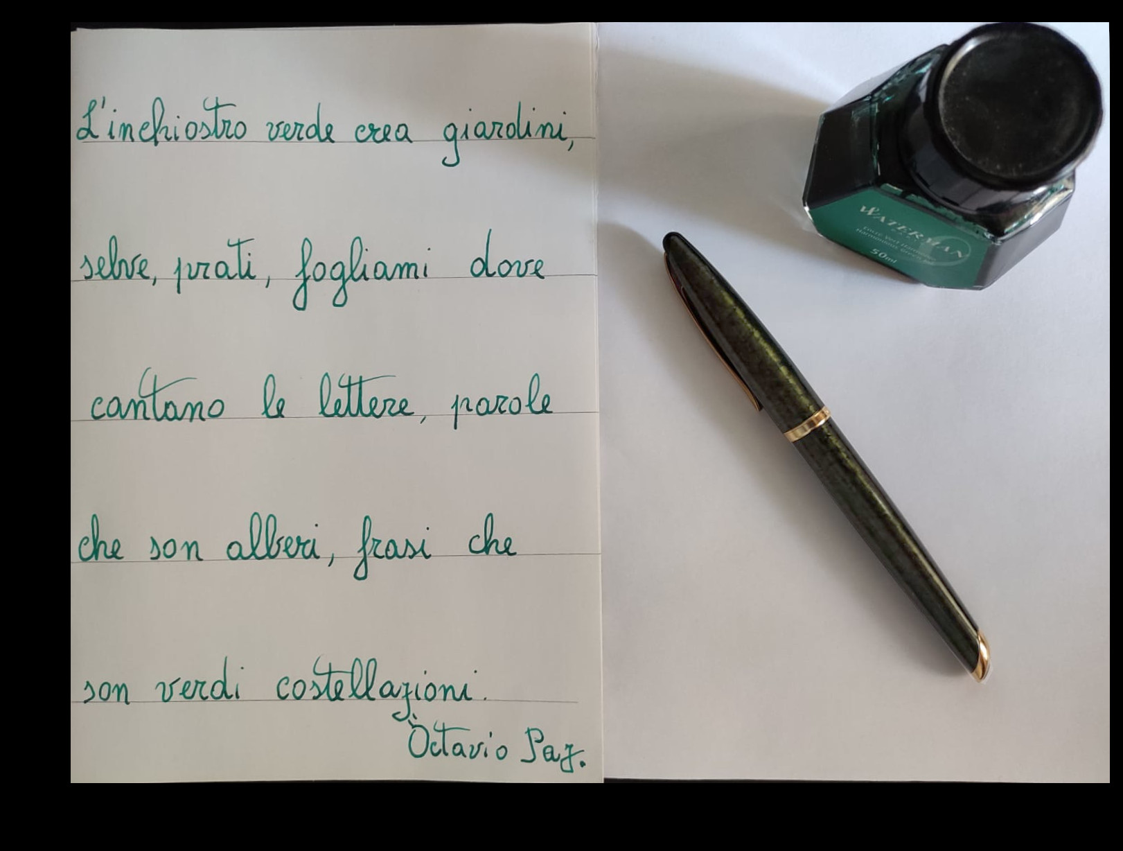 Qui una prova di scrittura con un inchiostro Waterman n tinta.