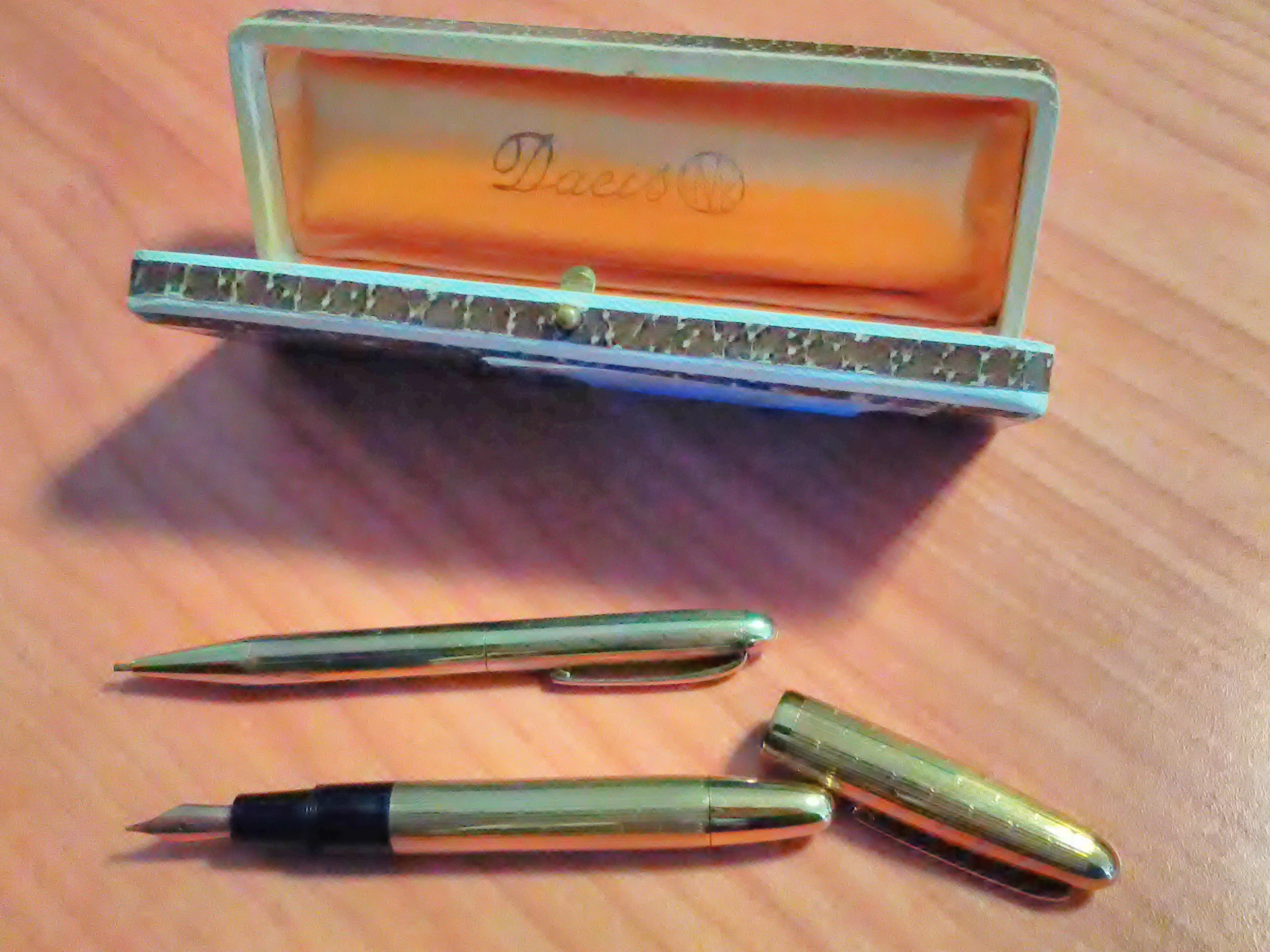 Nella Dacis, sul bordo cappuccio la scritta: "COLUMBUS LAMINATO ORO", sulla parte conico del portamine la stessa scritta. Peccato che lo stantuffo della