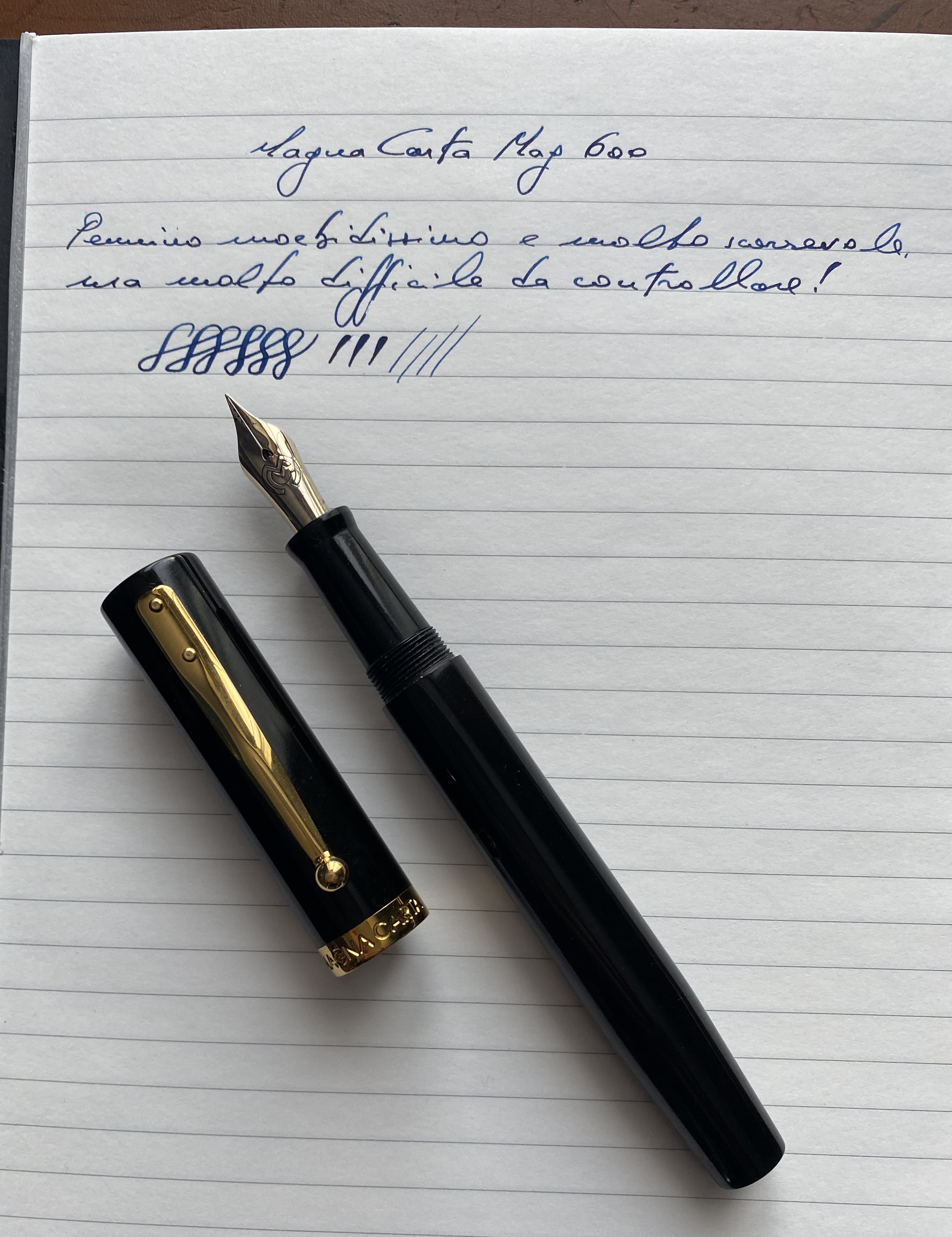 sto usando adesso una 1911 Large con un pennino M 21K (che è tranquillamente un fine europeo, ma tendete al EF, non alla Pelikan per intenderci).Silvia1974 ha scritto: ↑mercoledì 26 febbraio 2025, 20:17 Il famoso feedback cambia secondo il modello e la misura di punta, per mia esperienza. Nella M ad esempio era più pronunciato rispetto all’F, ed erano pennini 14k più rigidi. Il 21k è un po’ più elastico e mi sembra scorra meglio. Il pennino MF in acciaio infine ha ancora meno feedback. Queste le Sailor che ho vissuto io, poi ci sta la preferenza personale. La mia preferita rimane la 21k che mi piace perché è un giusto mezzo tra “sentire il pennino sulla carta” (feedback) e scorrevolezza.