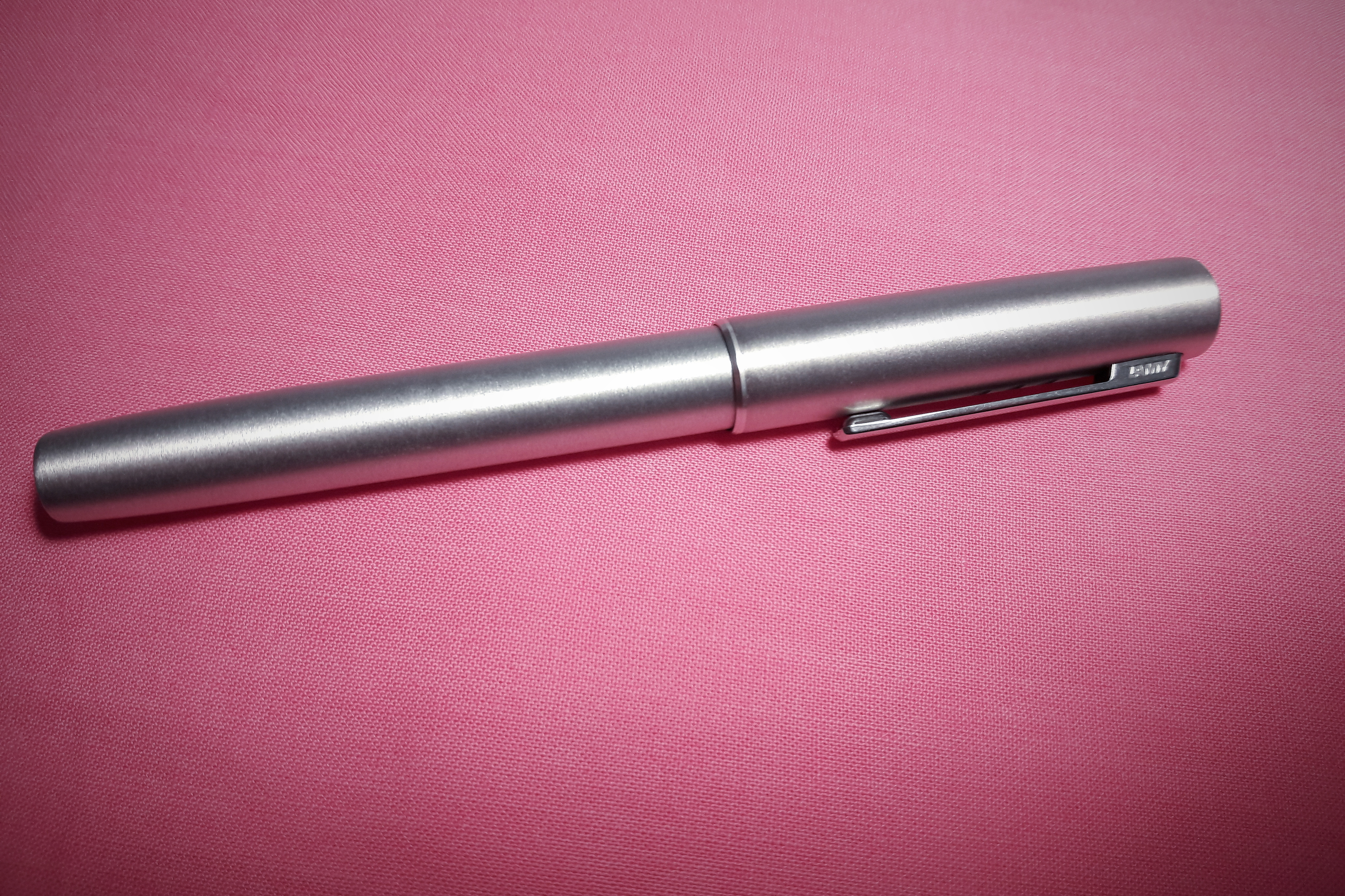 Nel complesso è un'ottima penna bella grande. Non so se mi è capitato un buon pennino, ma la scorrevolezza è eccezionale. Spero che con questi nuovi pennini abbiano migliorato la qualità e siano tutti così morbidi. Riesce a trasmettere una morbidezza molto vicina ai Lamy oro. Il flusso è abbondante. Il colore del fusto non ha niente di verde oliva come dicono loro. Si tratta del classico colore alluminio e basta. Il pennino è M.