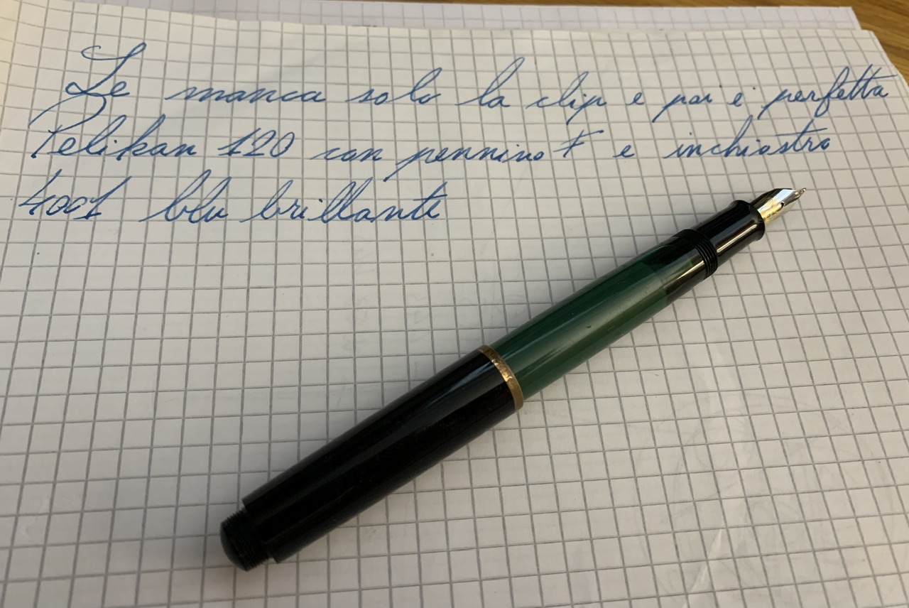 Pelikan 120 con pennino Fine, le manca la clip è la sommità del cappuccio.
