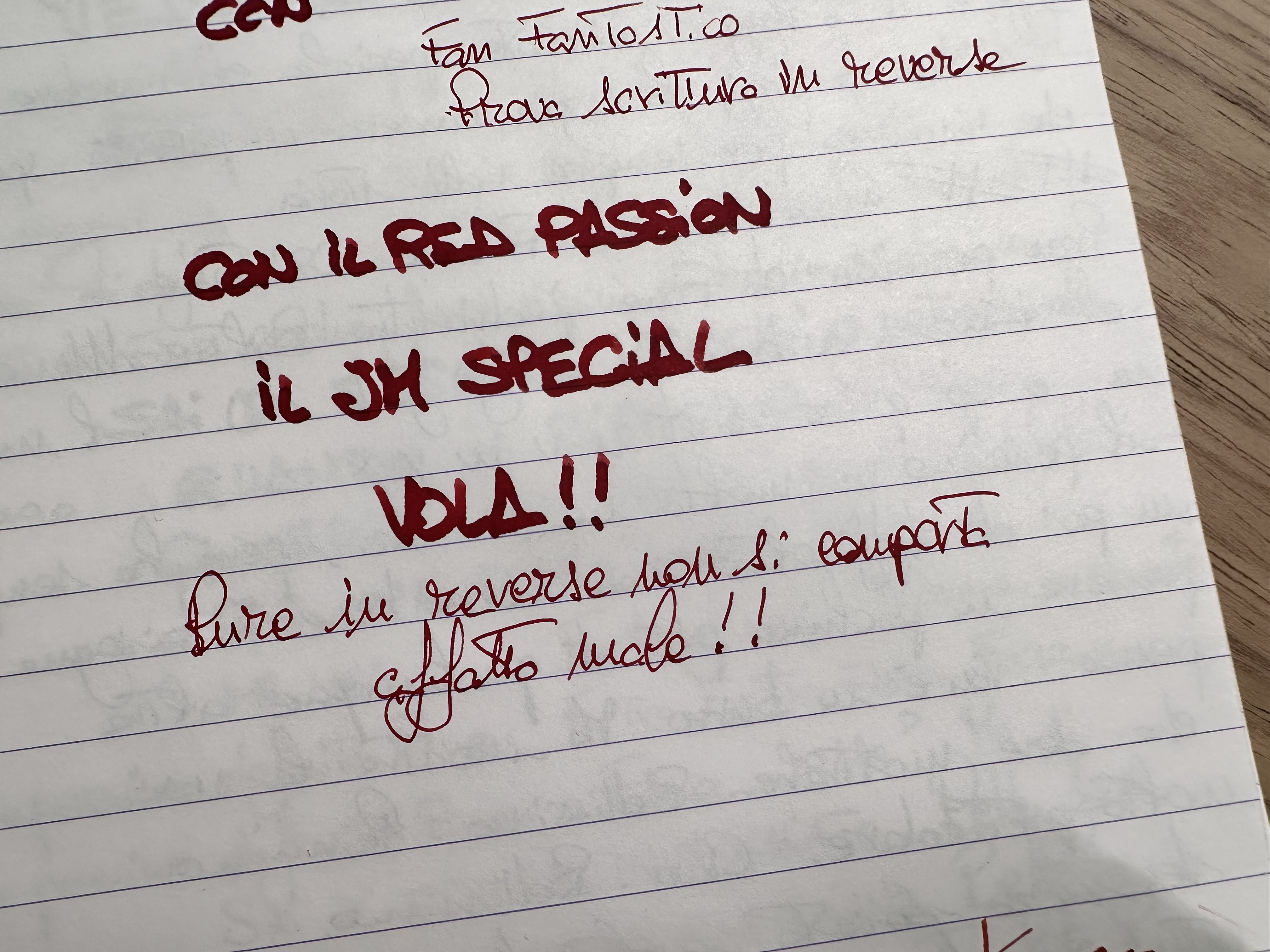 Durante la cena della Salumeria ho potuto provare una penna con pennino stacked ed era incredibile come scrivesse in reverse: due penne in una.