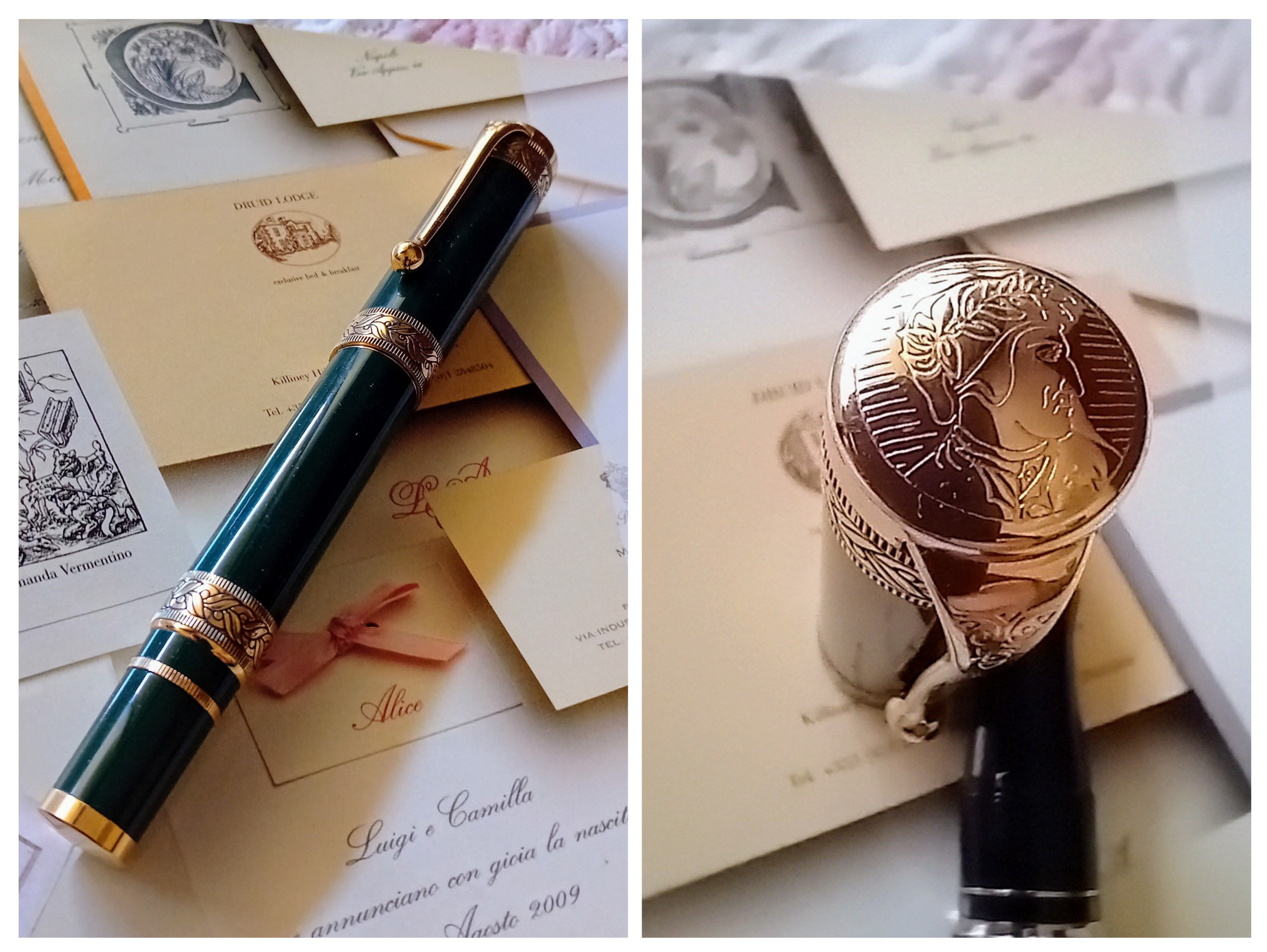 La seconda è un'altra Aurora, forse: ha il tappo identico alla precedente, con scritta "Aurora". Ma sul fusto non c'è scritto nulla tranne una piccola "F" per indicare il tratto (così come la precedente ha una "M" nella stessa posizione).