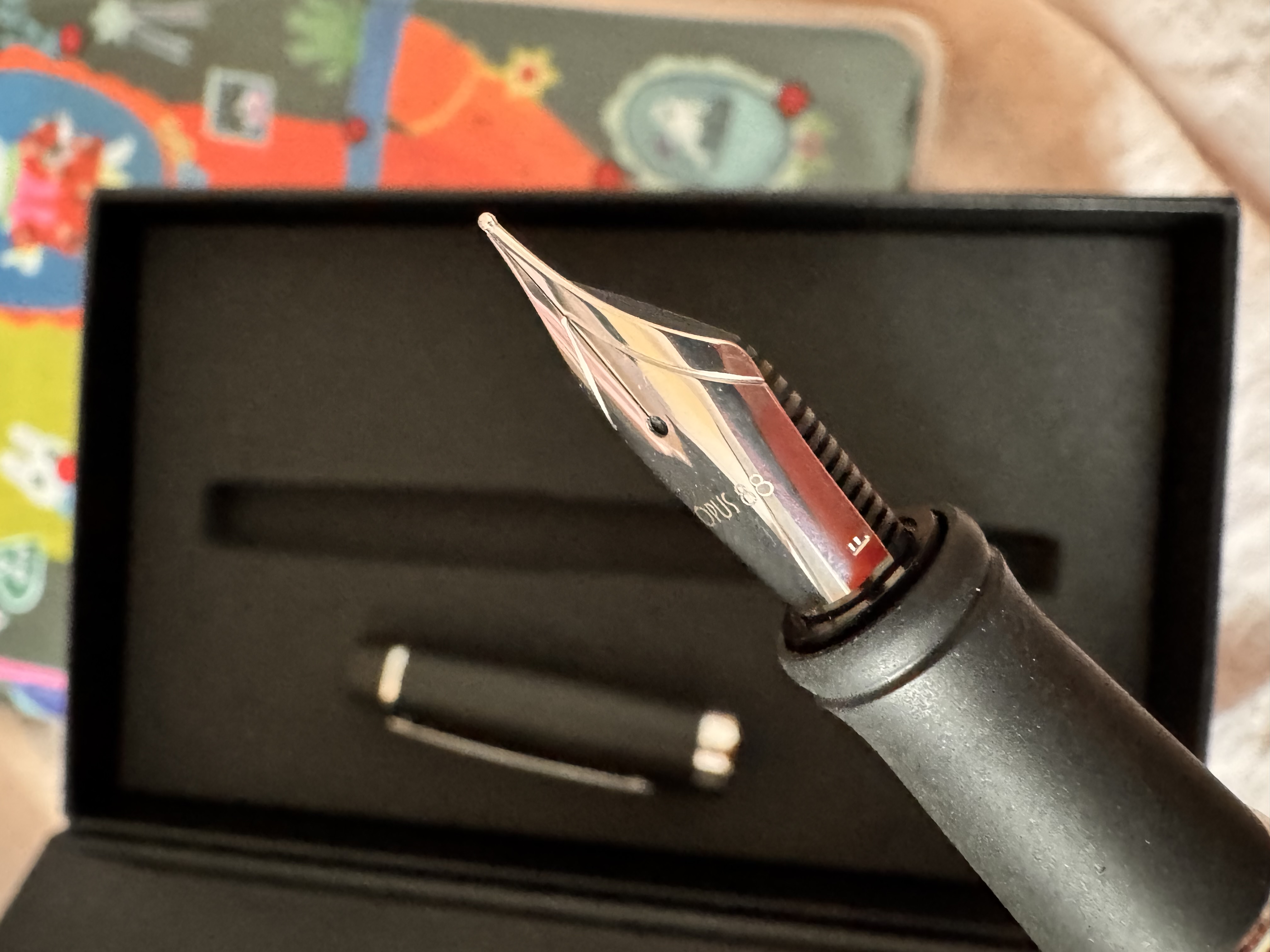 Ma poi ho messo su una cartuccia Montblanc Irish Green e… partita come un razzo. Flusso abbondante, scrittura super scorrevole e per la mia gioia verrà con me in quanto mia nuova penna preferita.