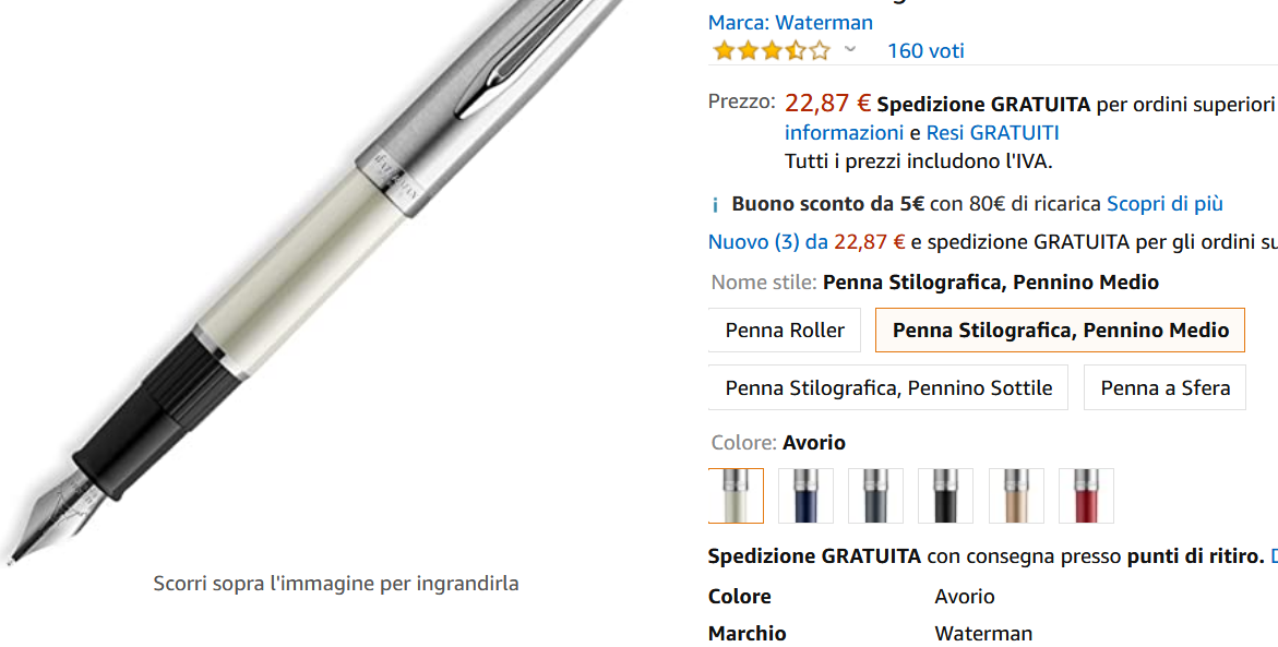 è calata ancora (€ 17,13), ma ne se ne è parlato così male che mi passa la curiositàGargaros ha scritto: ↑martedì 8 settembre 2020, 4:09 Waterman Embleme di colore bianco e punta M a soli 22,87 euri: