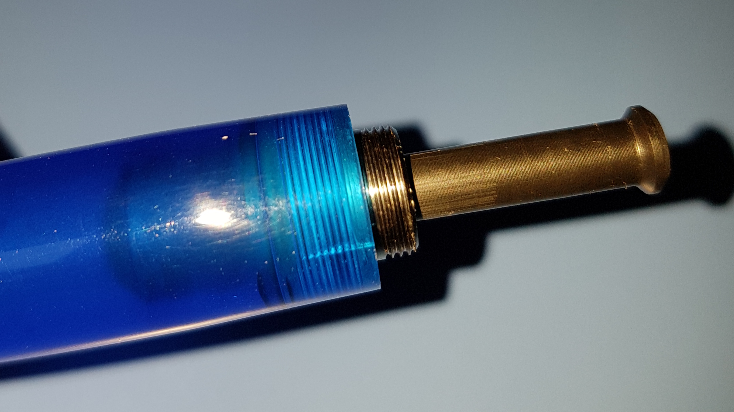 La mia è una discussione accademica, la penna va bene così, anche la Parker Vacumatic nella prima serie aveva il pulsante di carica in alluminio poi lo ha messo in plastica.