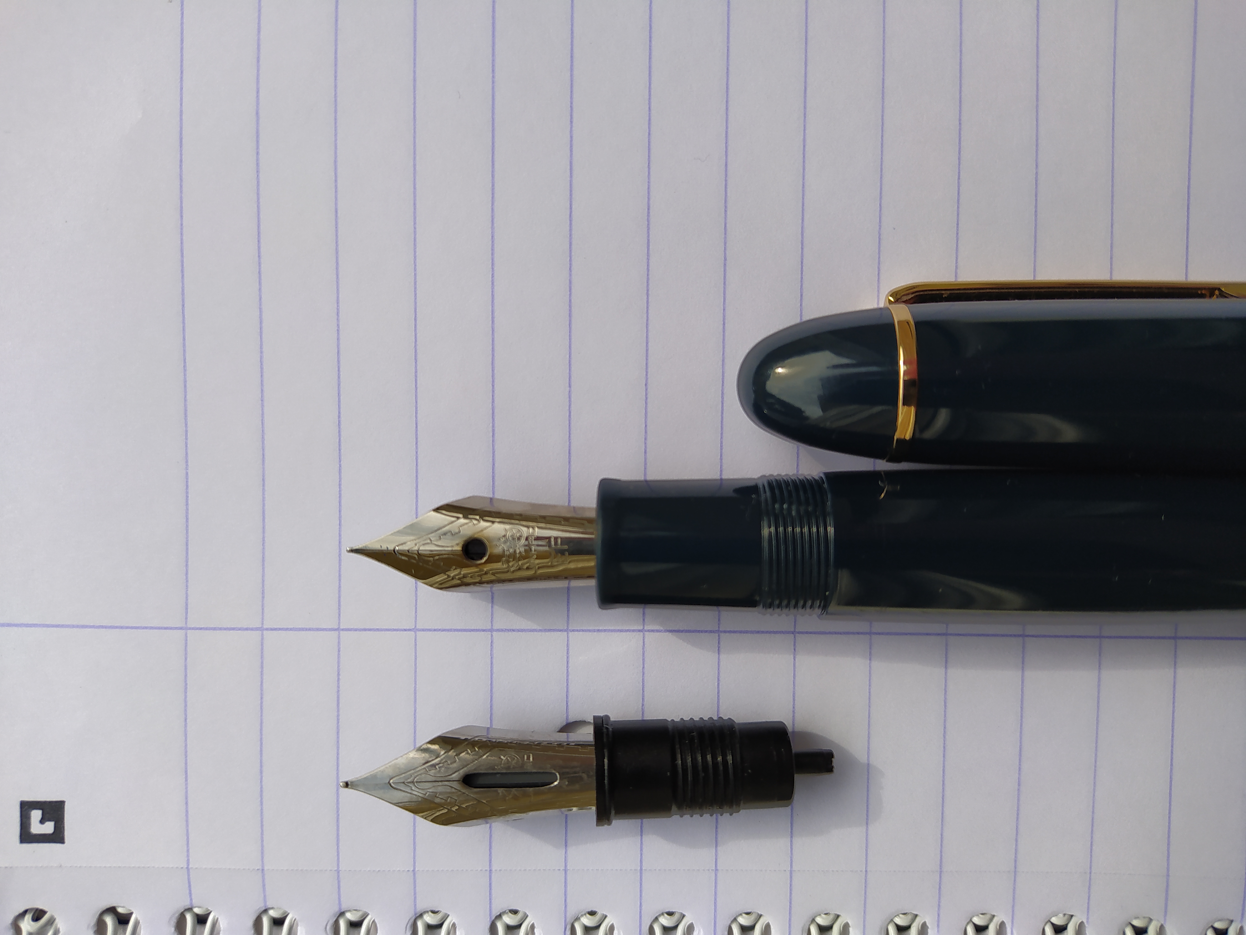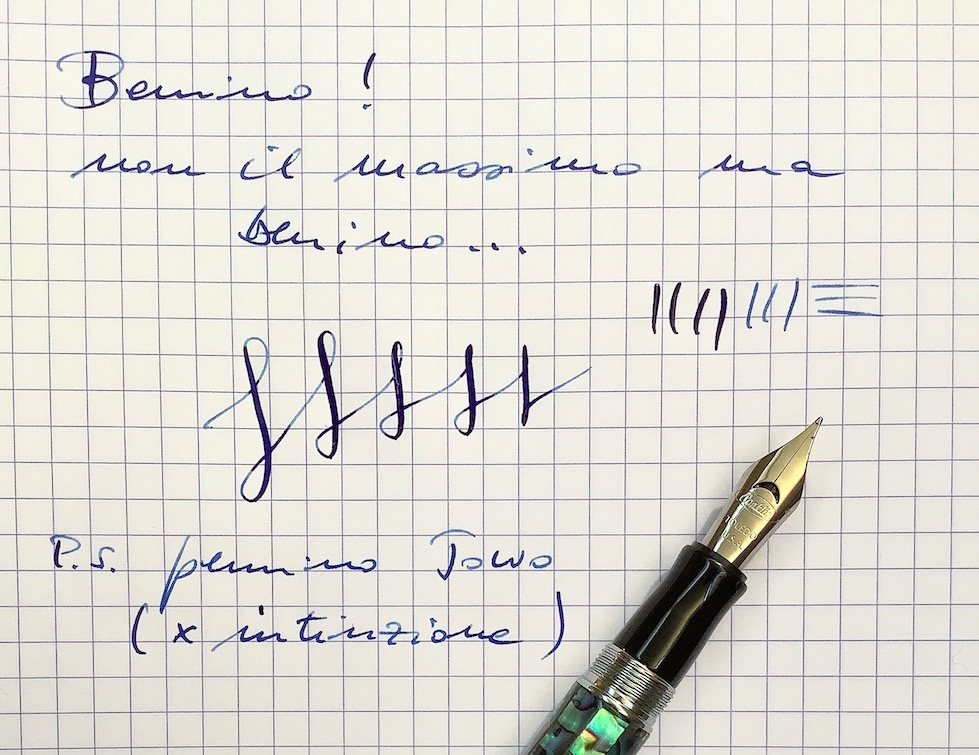 Difatti pur scrivendo un paio di pagine A4 con ogni pennino l'unico inconveniente che ho riscontrato è stato che il pennino F con l'asola è voracissimo di inchiostro, consuma come un Mig 21 in fase di decollo ! Terrò in opera il pennino EF perchè ritengo quello più adatto alla mia scrittura (non sono un calligrafo e si vede benissino :D ).