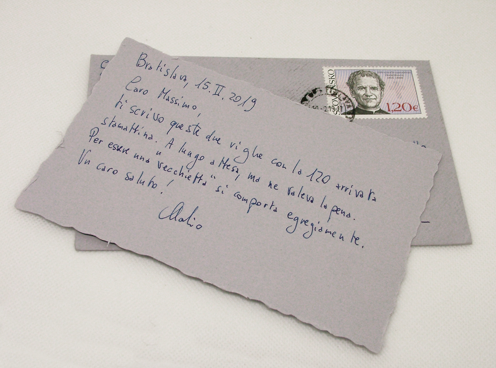 Grazie a Massimo per l'onore della pubblicazione del mio modesto biglietto. In effetti tra lettere e biglietti ne mando in giro parecchi, e tutti scritti rigorosamente con penne stilografiche.