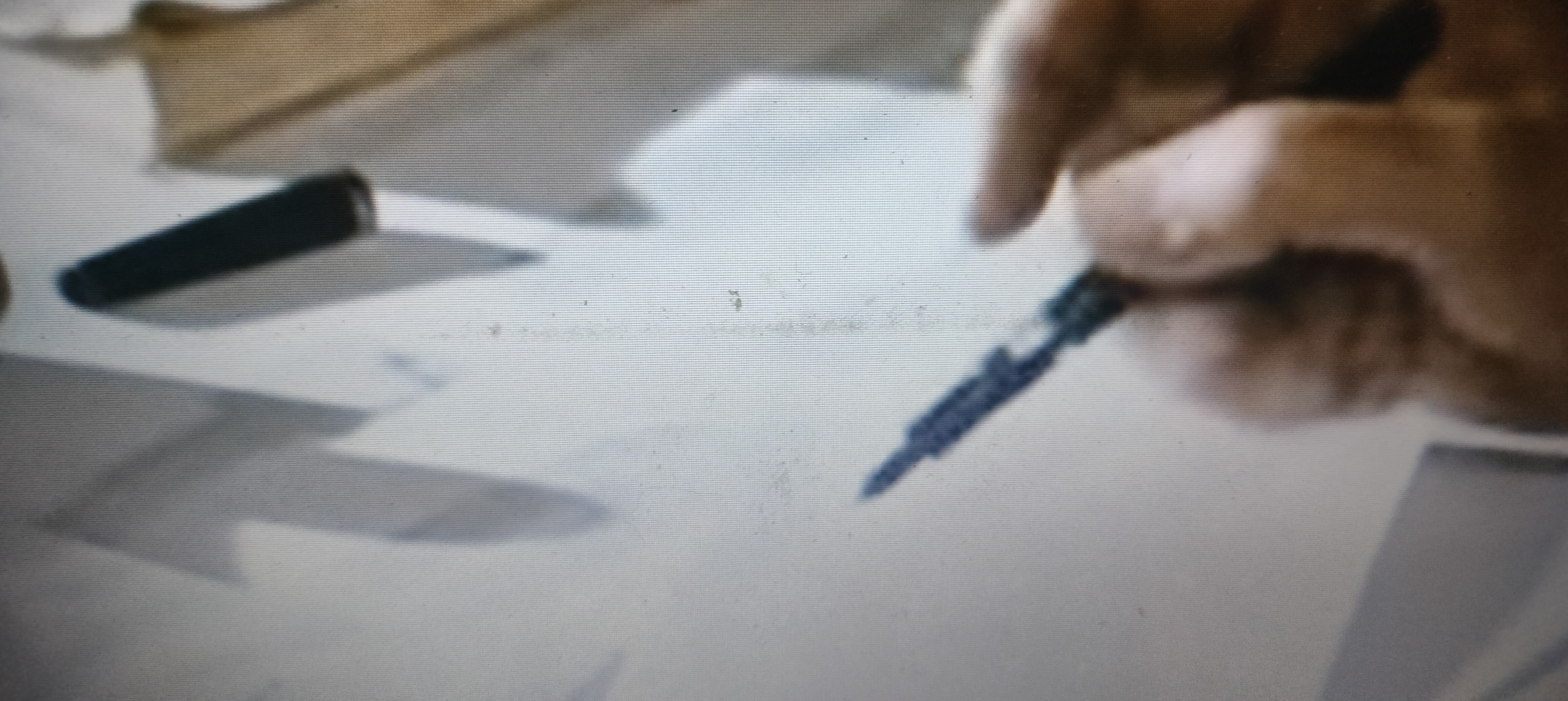 Ad un certo punto l'assassino prepara una falsa lettera secretata indirizzata al detective Rossi, e usa una stilo con inquadratura diretta sul pennino.