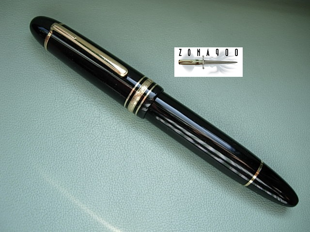 Montblanc Meisterstuck 149 in resina nera, pennino F originale in oro 14K molto flessibile, (un alimentatore vintage in ebanite è stato utilizzato su questa penna perché quello originale non era in grado di "alimentare" un pennino così flessibile) ottime condizioni, no crepe, danni o segni di rilievo, pronta all'uso