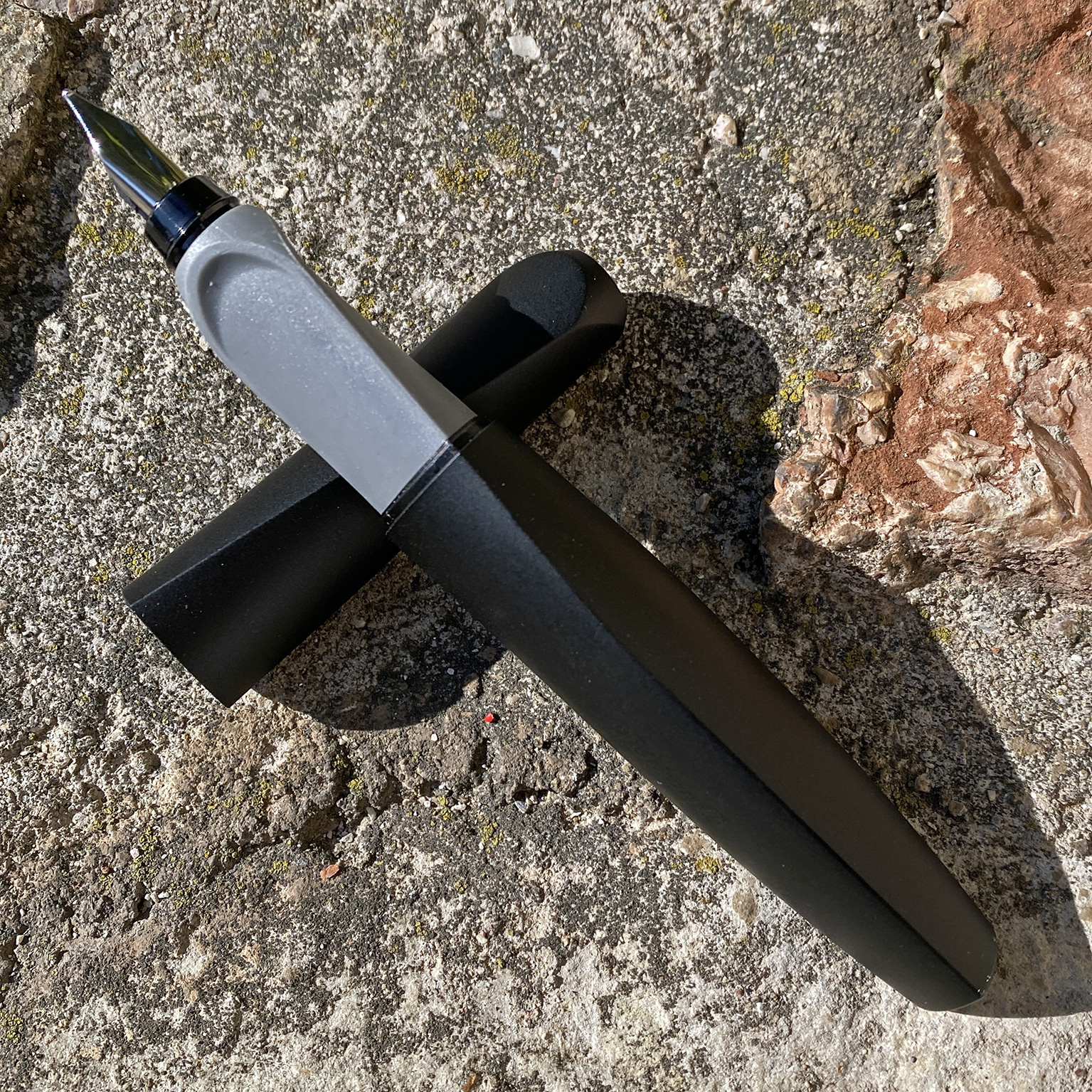 Il mio problema è che va impugnata in un unico modo, non c'è possibilità di rotazione o inclinazione e questa posizione fissa mi costringe a modificare tutta la mia postura se voglio scrivere: dita, mano, polso, gomito, spalla, schiena e bacino con conseguenti dolori a tutte le articolazioni dopo una quindicina di minuti d'uso. A pensarci, ciò che mi succede è giusto, non è la penna il problema, sono io che sono cementato da anni in una postura non corretta.