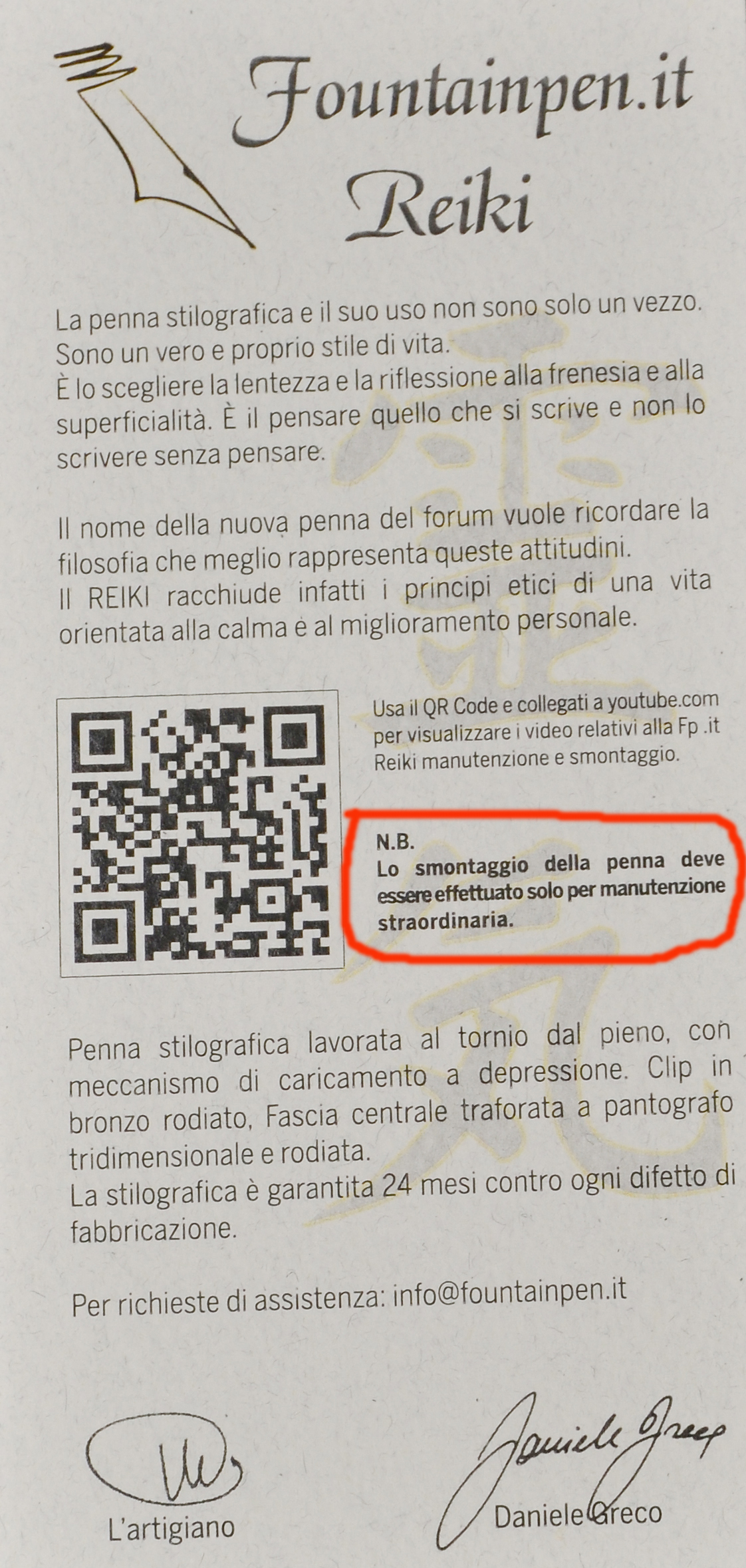 Sul foglietto allegato alla Reiki è scritto chiaramente
