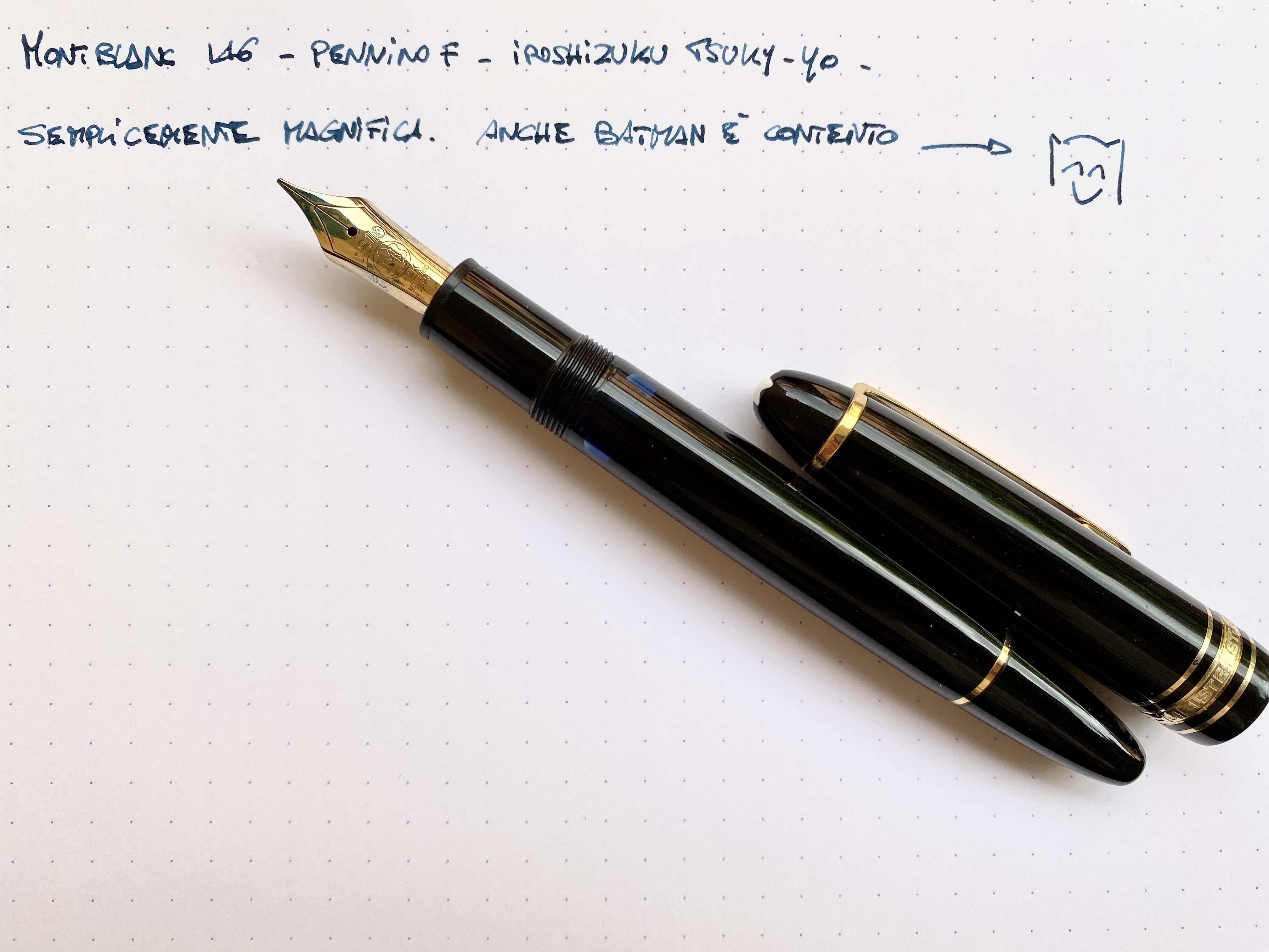 La Meisterstück 146 é un classico intramontabile, oltre ad essere una penna che funziona sempre. Se quella che ha acquistato é la penna ancora visibile nelle pagine del mercatino del forum (dove risulta appunto già venduta), é un esemplare splendido. Io ne possiedo una uguale con pennino monocolore in misura Fine, ed é un piacere morboso da usare...
