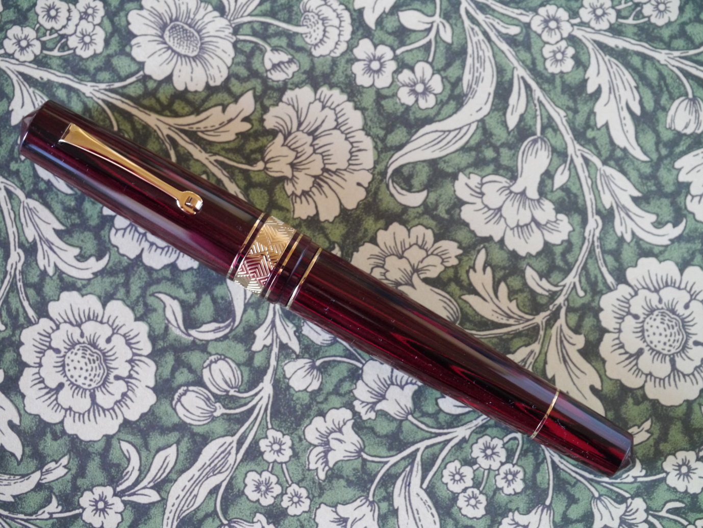 Si è detto che il pennino sia troppo piccolo, ma a me non pare L'ebanite è molto bella, come in genere lo è la Cumberland, nel caso specifico di un tono rossiccio acceso nelle alte luci che contrasta bene e la rende classica ma per nulla noiosa, e le finiture dorate si sposano a meraviglia, non le trovo eccessive, l'anello tra sezione e fusto arrotonda furbescamente il altrimenti più distinguibile gradino.