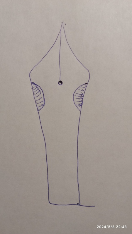Secondo me è probabile che oltre ad influire sulla flessibilità del pennino le fresature sul dorso in corrispondenza del foro originario facciano affluire più aria e di conseguenza il tratto è molto più bagnato.