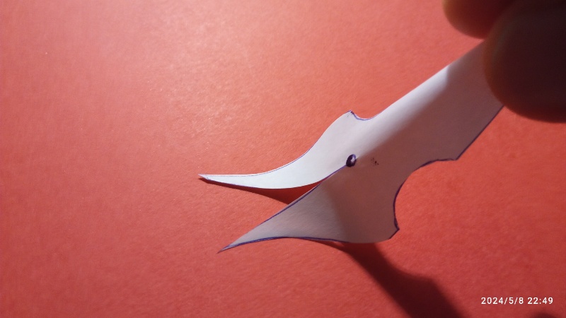 Ho provato ma il comportamento del pennino di carta non varia molto con o senza tagli laterali. Varia se la superficie è curva o piana, questo sì!