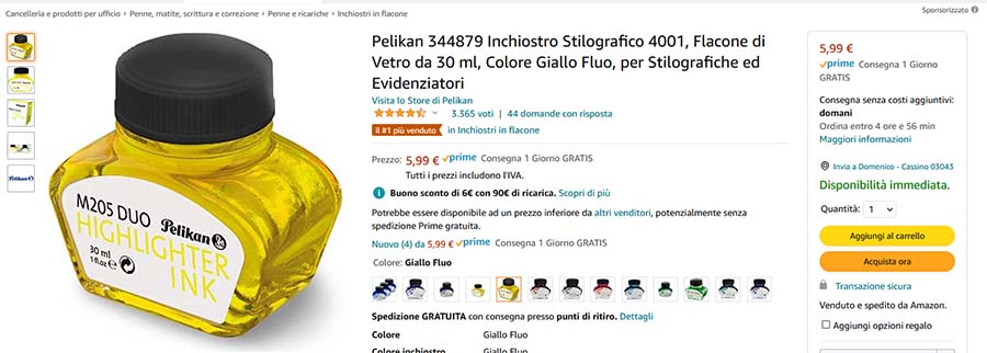 Su Amazon vi è un'offerta dell'inchiostro Pelikan 4001 fluo a metà prezzo: