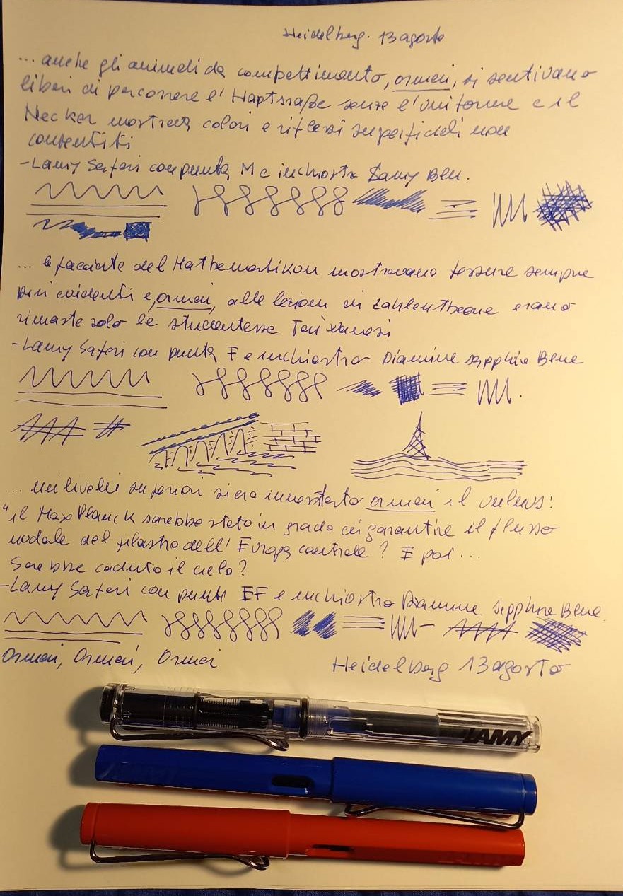 Il secondo, con un pennino a intinzione molto più largo, sembra un nero con leggeri riflessi violacei.