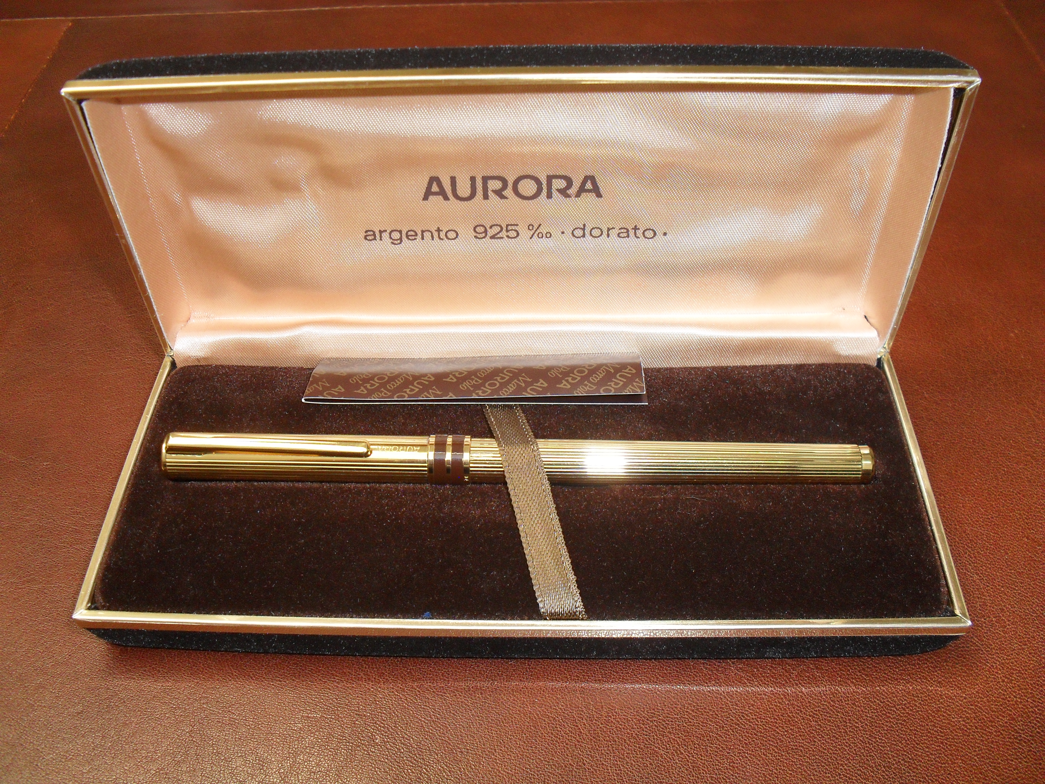 Aurora Marco Polo in vermeil (argento 925/1000 dorato), mai utilizzata, in confezione originale.