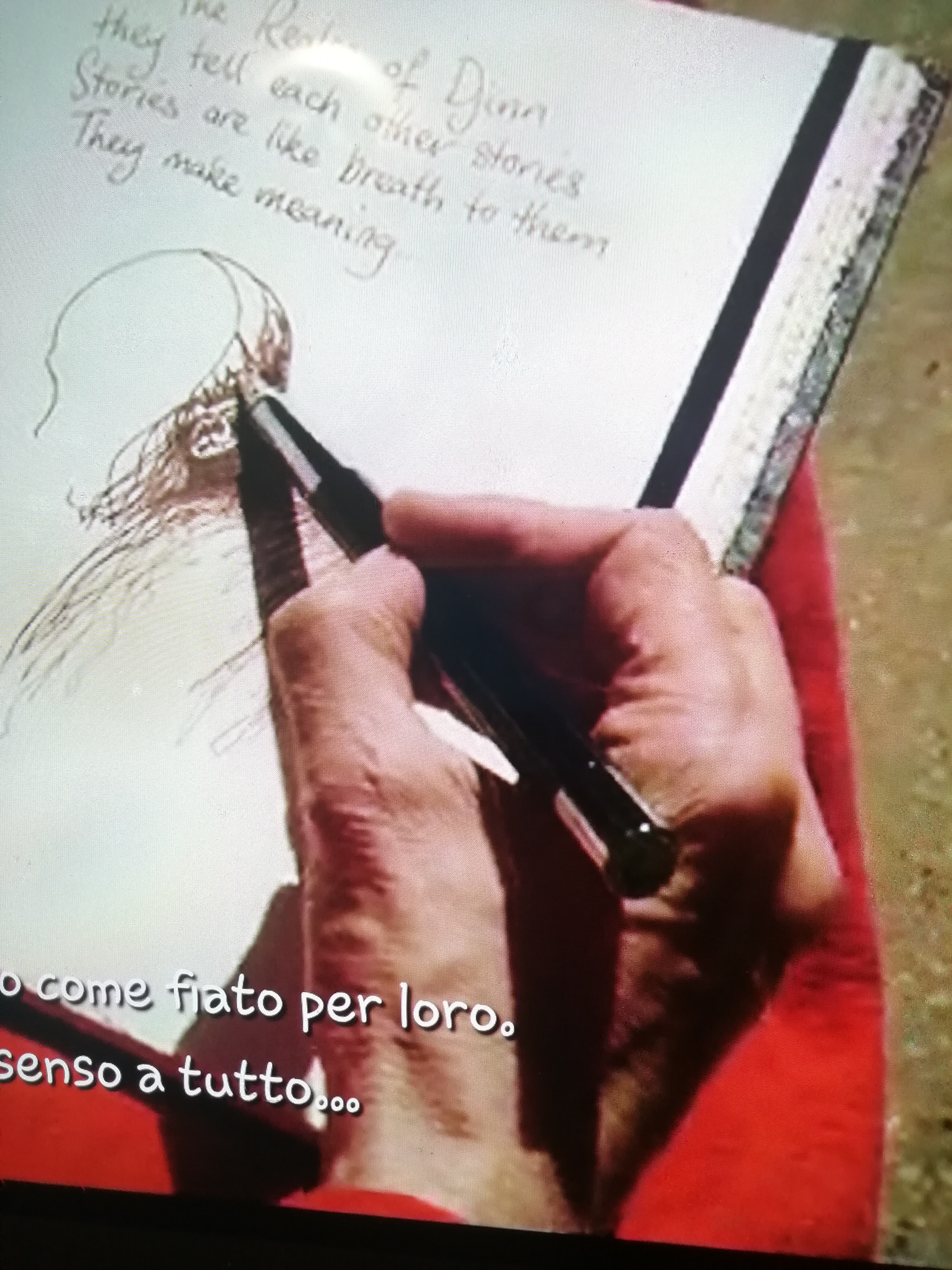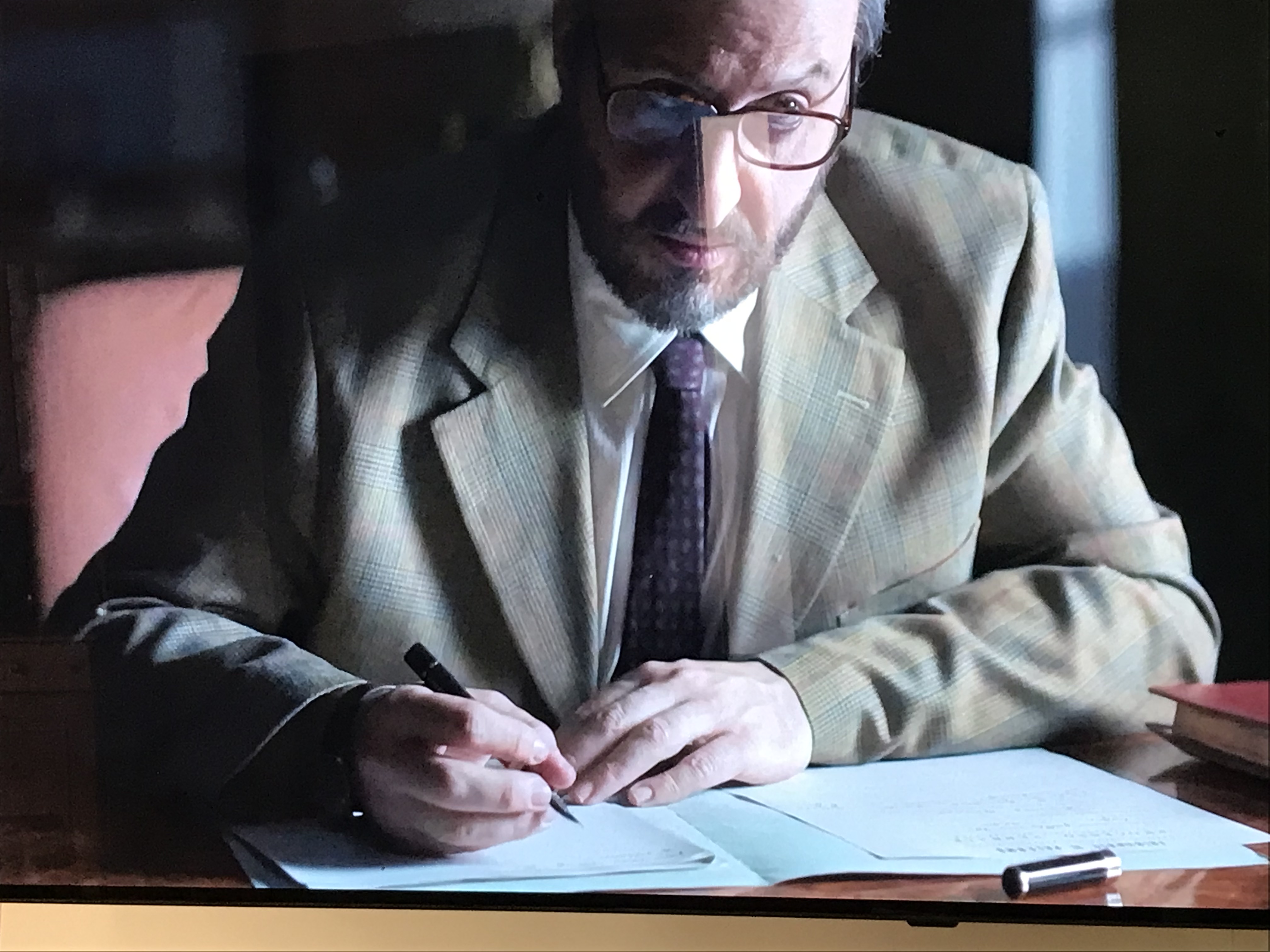 Serie che non vedo. Ho visto solo questa sequenza e ho notato questa stilo particolare... Ma è una stilo? Peccato il pennino sia tagliato (regista ignorante e cafone!)...