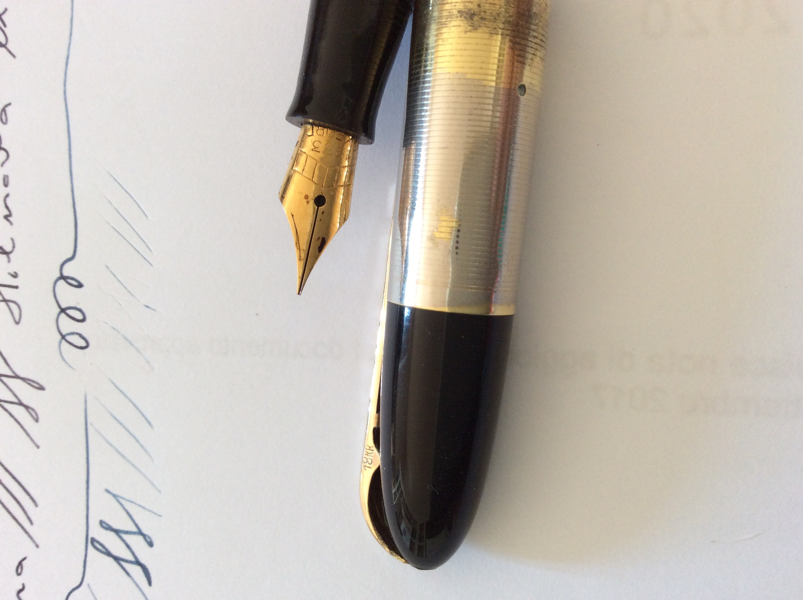 Ripropongo il post dopo aver sistemato la penna che ha sofferto di tragiche ossidazioni sul cappuccio (credo dovuti alla barra interna arrugginita che ha fatto perdere alla placca parte della doratura) e aver sostituito il pennino ( era un ma(j)or 4 forse non originale) che grattava veramente troppo. Ora la palla passa a voi storici :D Io sui sacri testi e in rete non ho trovato nulla. Sulla clip c’e Scritto Unica e di lato 18kr. Grazie in anticipo per le risposte.