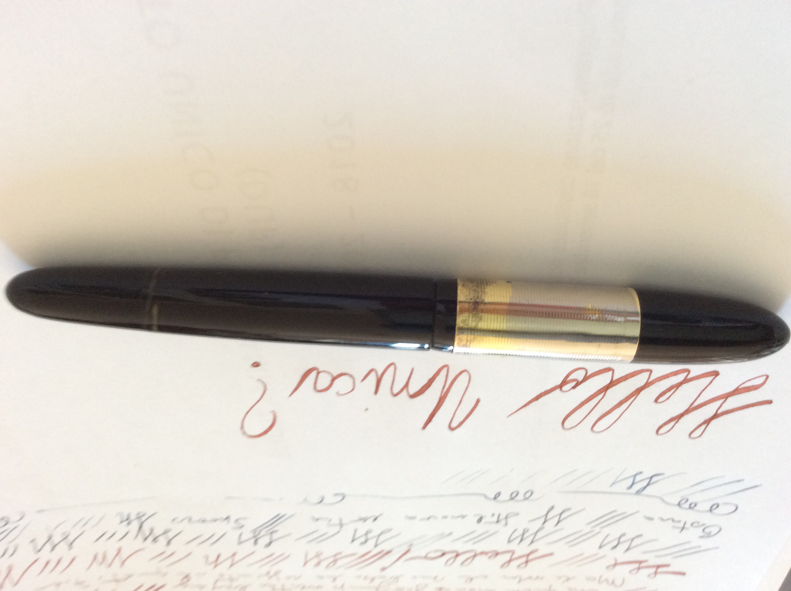 Qualche tempo fa mi sono lasciato prendere dalle correnti della baia e ho pescato una stilografica che mi piaceva molto, a pulsante, celluloide scura a righe orizzontali, pennino ( oro o placcato) marcato Ma or ( sospetto sia saltata la J ) e sul cappuccio una placca metallica lavorata. Sulla clip è riportato Unica. Ora viene la domanda: qualcuno ne ha mai sentito parlare.? Il venditore mi suggeriva una produzione minore nell'area di Settimo T. Grazie in anticipo.mb