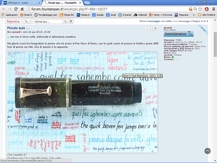 Lo so che Patrician è uno dei grandi classici di Waterman! Mi sono lasciato ingannare perché nel sito parkerpens.net c'è una parker patrician molto simile a quella del quiz; scusami non so attaccare il link ma basta scorrere le linguette a sinistra fino a parker patrician. (Se non ho capito male Patrician sarebbe una ditta acquisita da Parker).piccardi ha scritto:No, non è una Patrician (che è un modello della Waterman).Giorgio1955 ha scritto:A me sembra una Patrician.