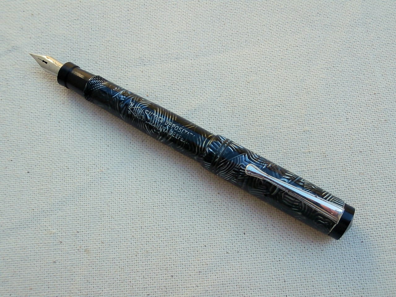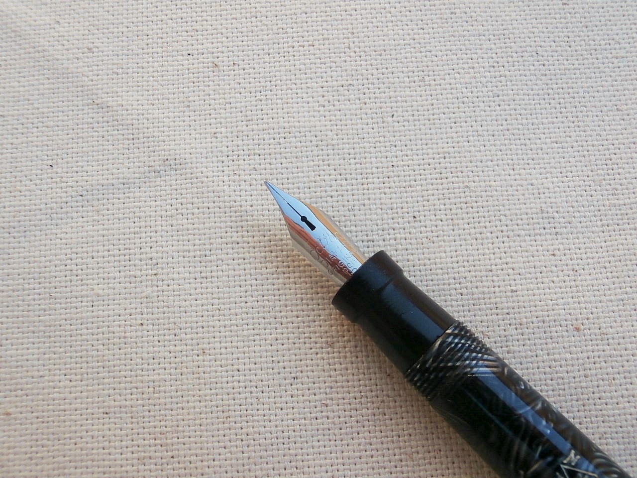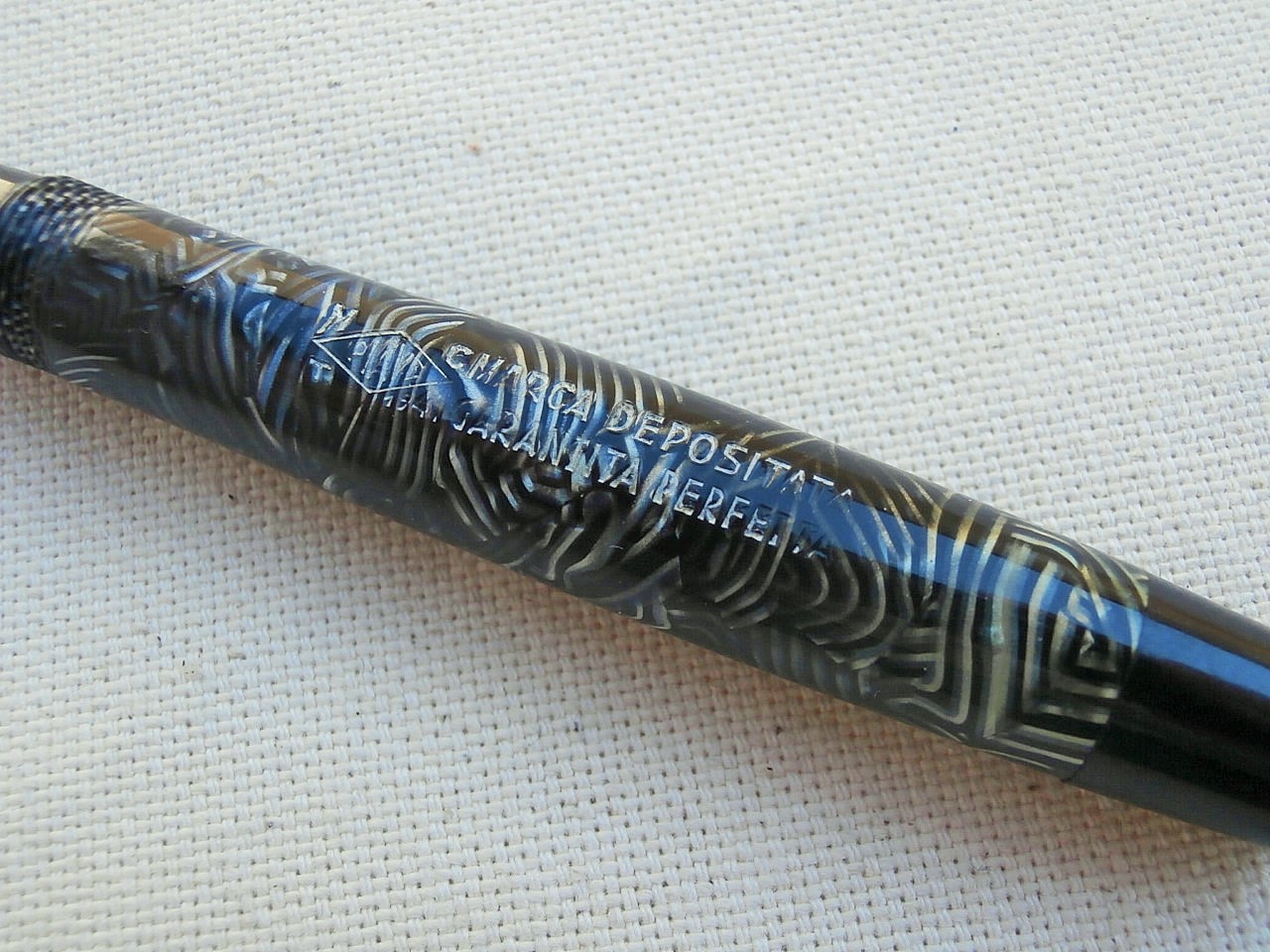 Bella penna con celluloide particolare, ma particolare il foro del pennino a serratura, cosa ti ricorda malandrino di un Fabrizio.