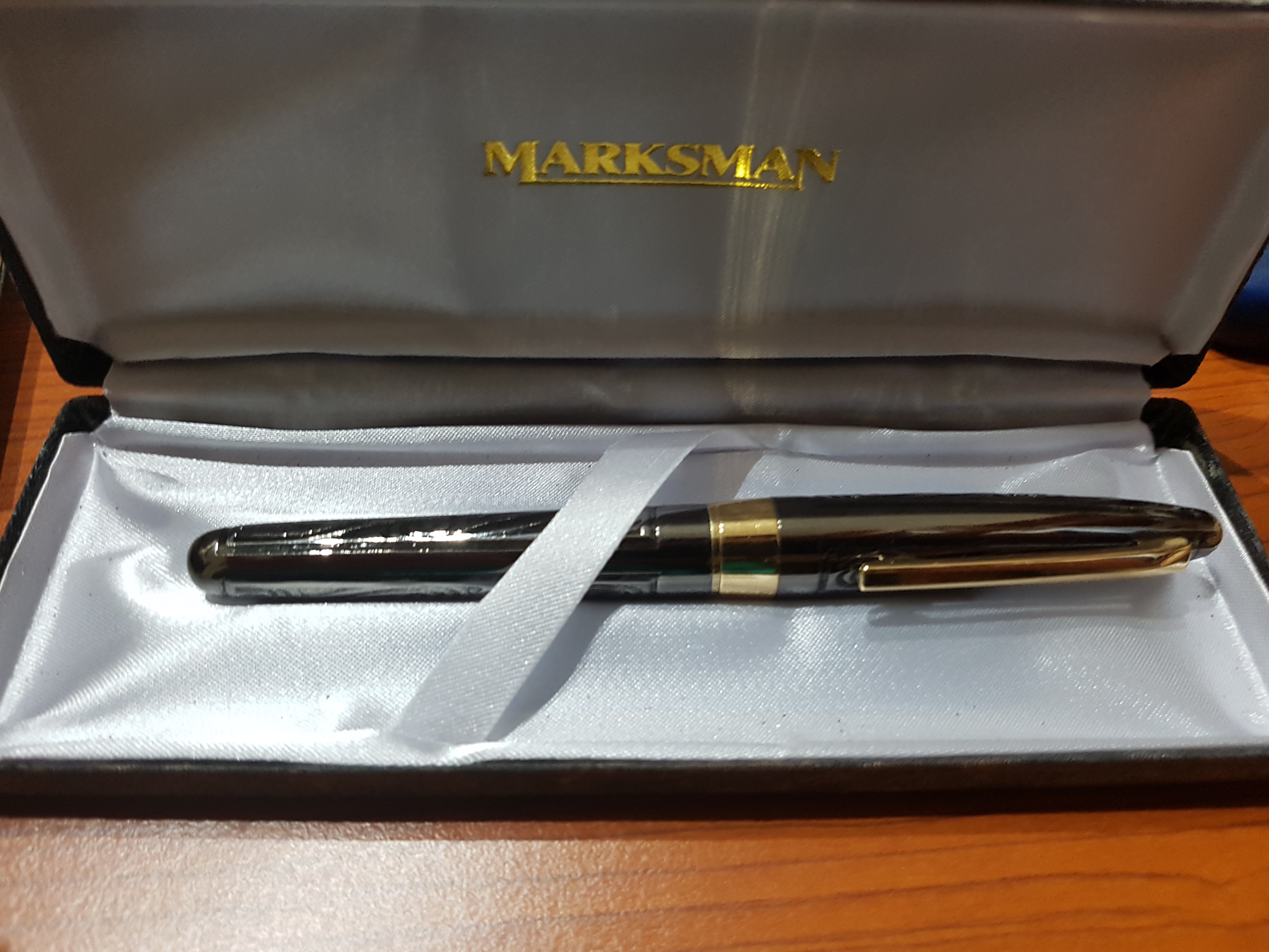 Rispolvero questo vecchio post per chiedervi se esiste un modo per riconoscere il modello di penna Marksman. Ne ho ritrovata una di mio padre dimenticata in un cassetto e mai usata. Sicuramente un regalo di più di 30 anni fa.