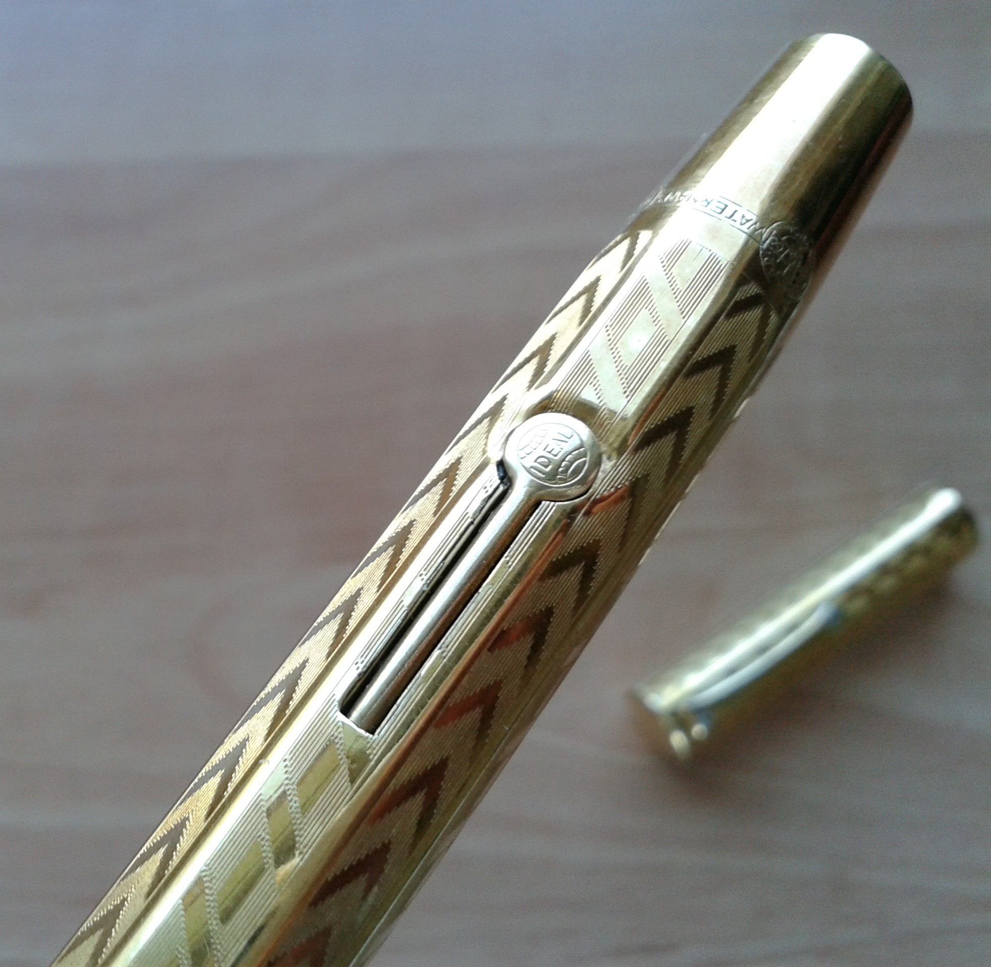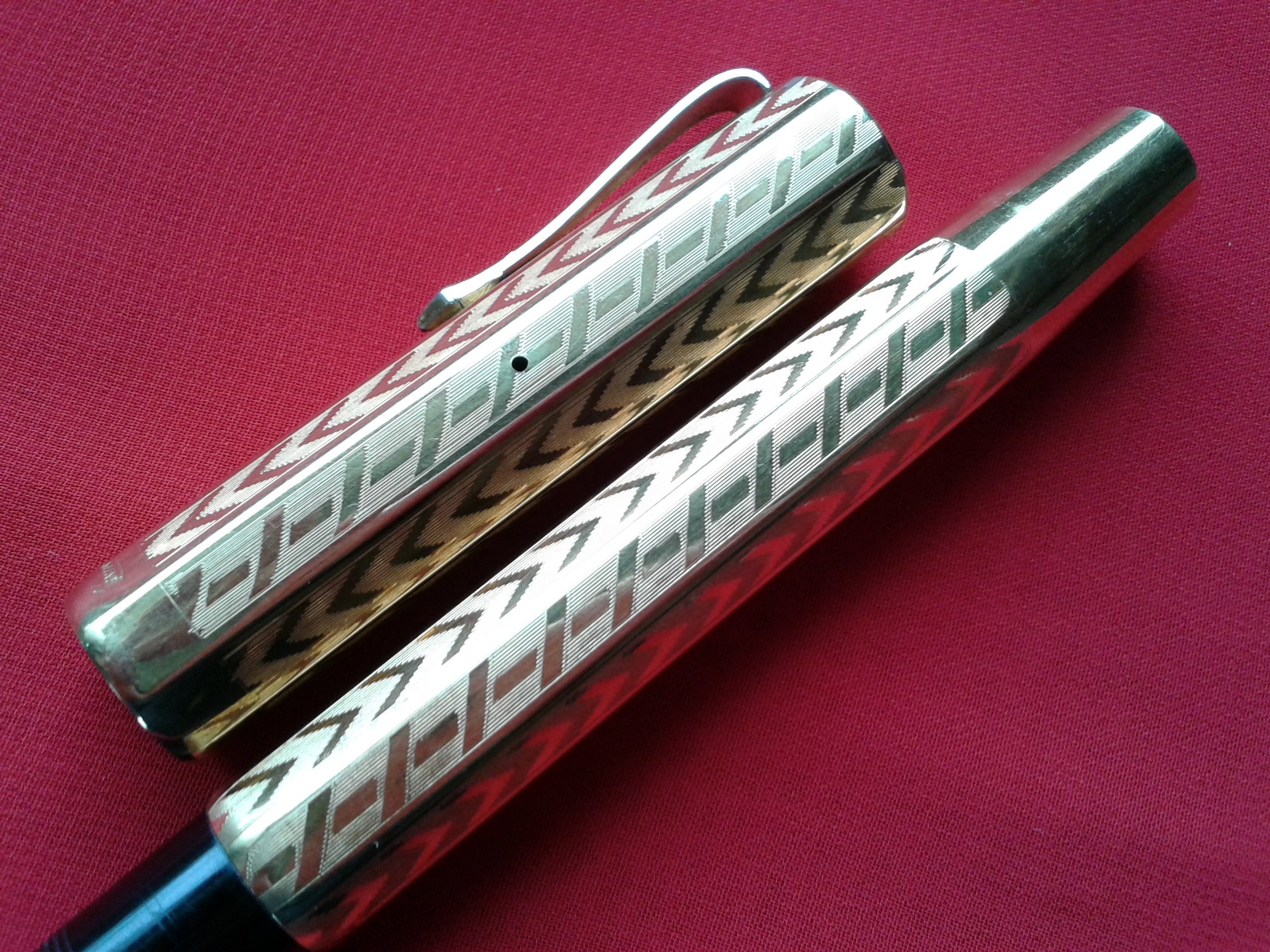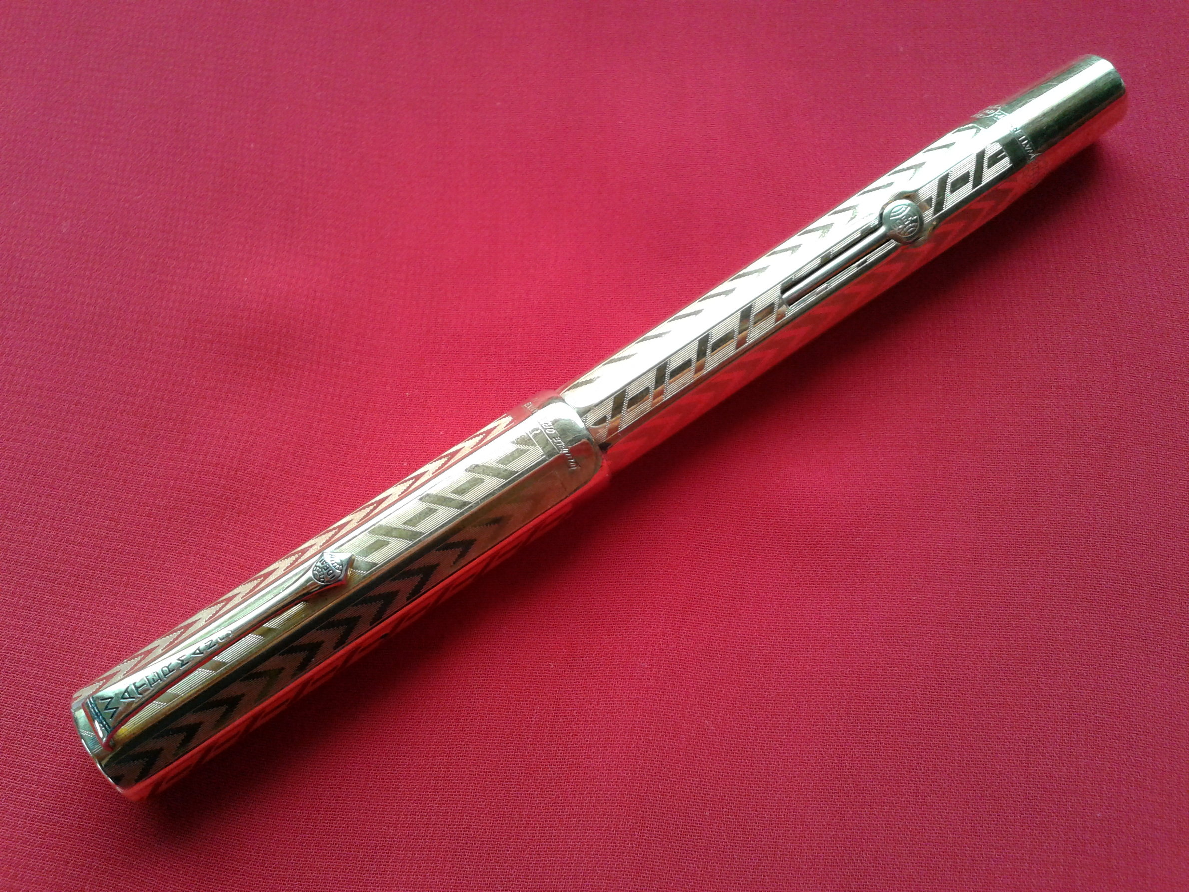 E' interessante notare come la decorazione abbia un verso: con penna chiusa le "V" che decorano il cappuccio ed il fusto procedono nella stessa direzione (slanciando la penna), mentre con cappuccio calzato le "V" si dispongono in opposizione, evitando di allungare anche otticamente una penna già "fuori misura" (oversize)...