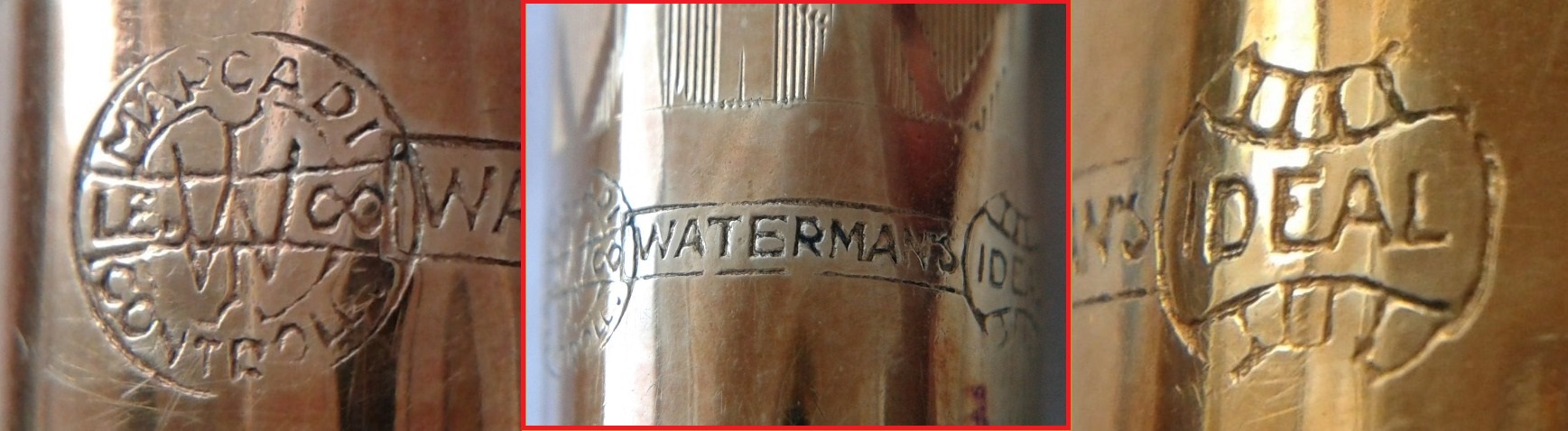 ben 3 sono i globi "IDEAL" (su clip, levetta e fusto) ed altrettanti sono i marchi Waterman's (su clip, fusto e marca di controllo, in acronimo L.E.W.CO. = Luis Edson Waterman Company).