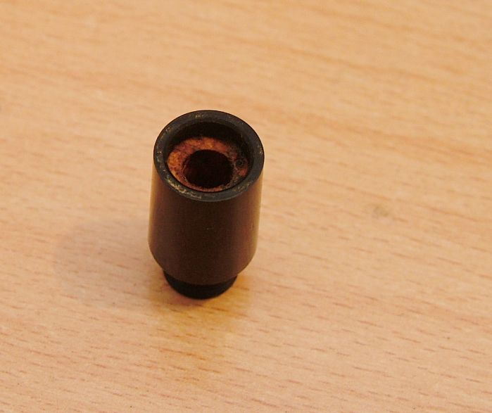 Approfitto per un'annotazione che credo possa essere estremamente utile: mentre la quasi totalità delle rientranti Aurora sono identiche nella costruzione e quindi nello smontaggio alle Waterman, alcune, in particolare quelle di misura più grande, pur apparendo identiche hanno in realtà l'alberino della spirale avvitato nel fondello: inutile quindi picchiarci sopra e pericoloso farsi prendere dalla frustrazione e dalla rabbia non sortendo i colpi assestati alcun risultato: si finirebbe inevitabilmente per spaccare il fondello. L'unica soluzione possibile credo che sia quella di trapanare la spina sino a lasciarne uno spessore minimo: fatto ciò diventa abbastanza facile estrarla utilizzando il foro praticato; a quel punto si può svitare il fondello tenendo ferma la spirale. Realizzare poi una nuova spina è abbastanza semplice: basta far ruotare nel mandrino di un trapano un vecchio diffusore o qualcosa di simile e ridurlo con una lima al diametro adeguato.