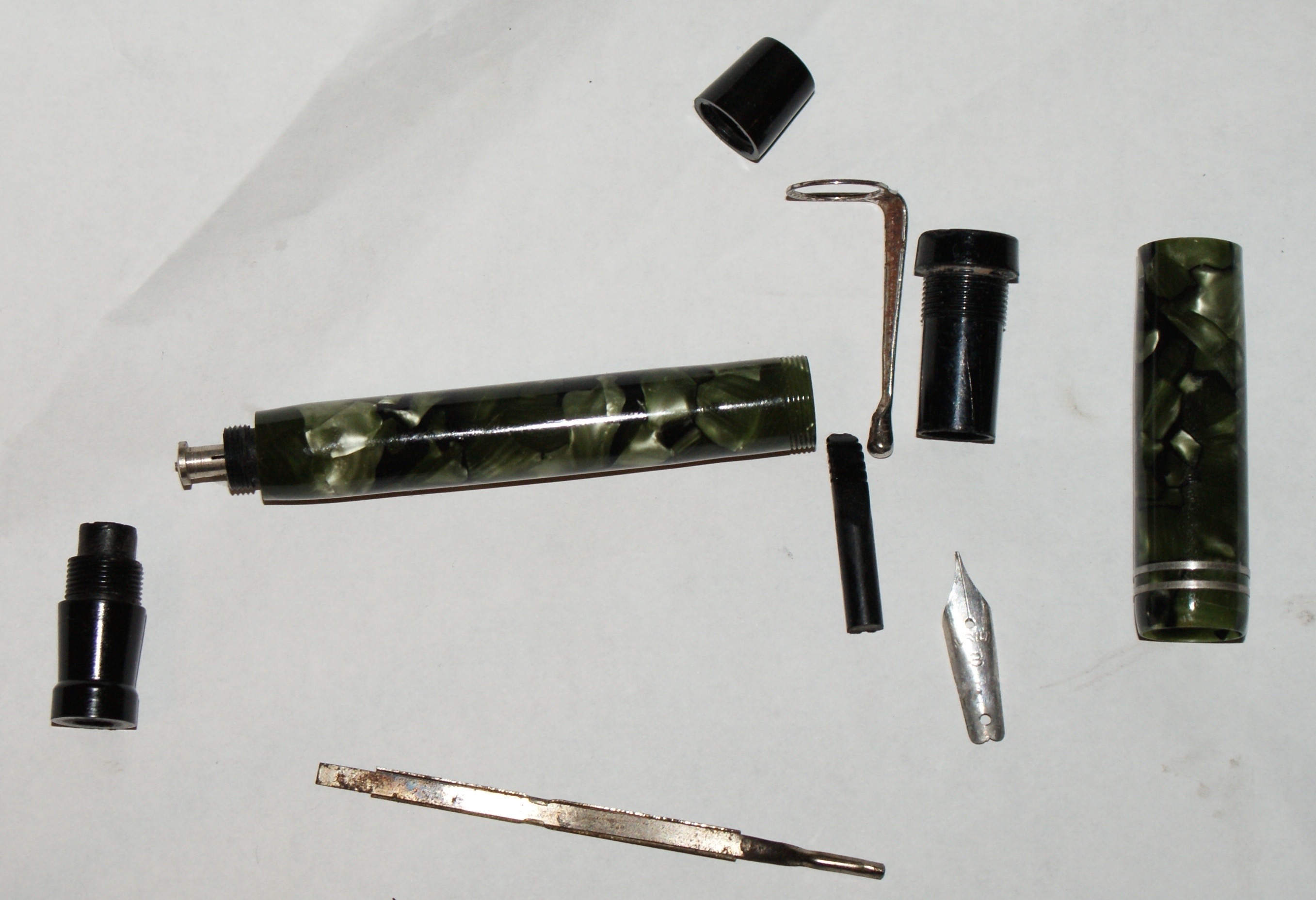 Purtroppo, la foto della penna nel suo stato di conservazione originale, è stata cancellata per errore dalla scheda di memoria della mia fotocamera, ma si vedono nel dettaglio le varie parti.