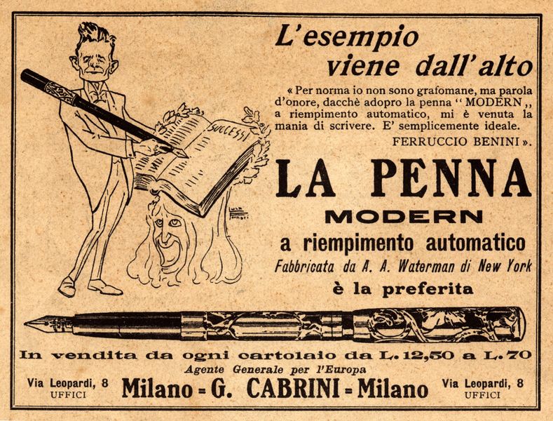 Questa la risposta di L.E. Waterman, sempre nel 1911 in una pubblicità da me reperita: WATERMAN's - da EMPORIUM Vol.XXXIV N.204 - Dicembre 1911.