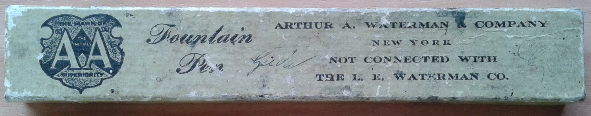 "The Modern Pen Co." (con l'articolo), e continuò bellamente ad usare il nome di "A.A. Waterman" per i suoi prodotti marchiandoli tutti con il disclaimer (parlatene male, ma parlatene: tutta pubblicità, avranno pensato!)...