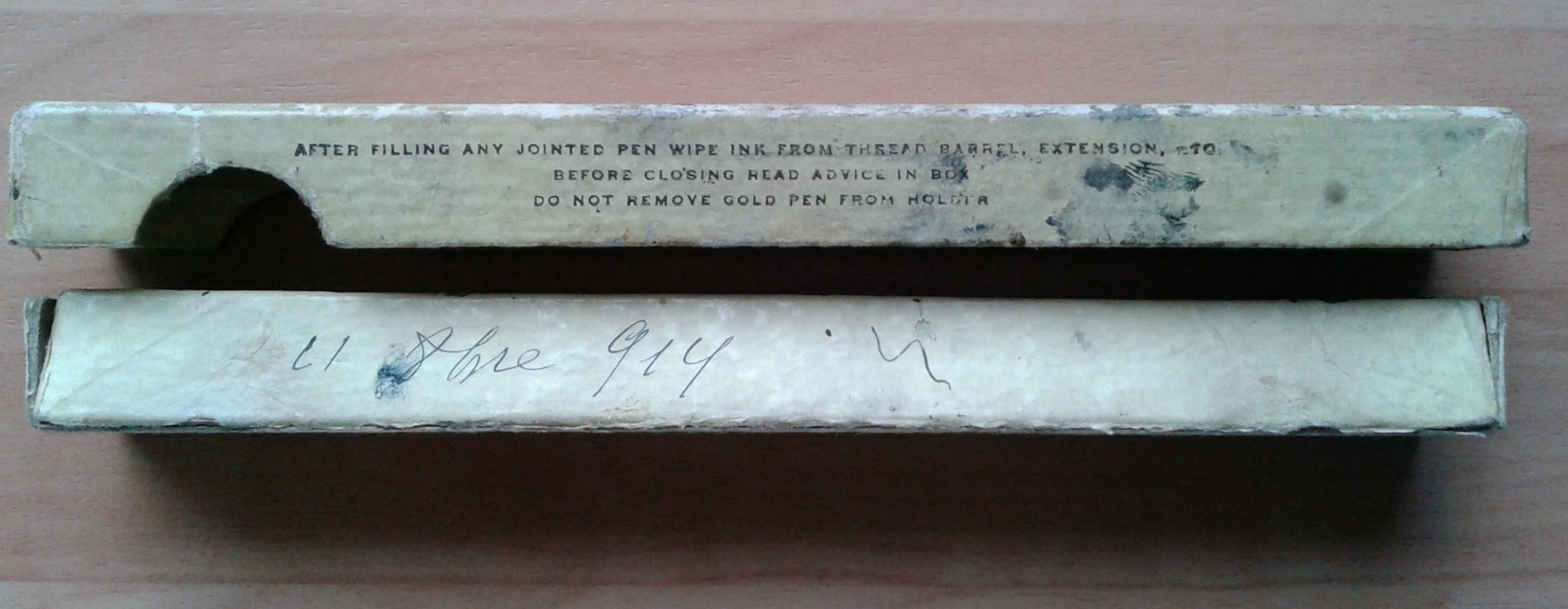 Altro limite superiore per l'acquisto di questa stilografica, che spiegherebbe il disclaimer sulla scatolina, ci viene dalle scritte presenti sulla scatolina stessa, vergate con un tratto molto fine, in inchiostro nero: