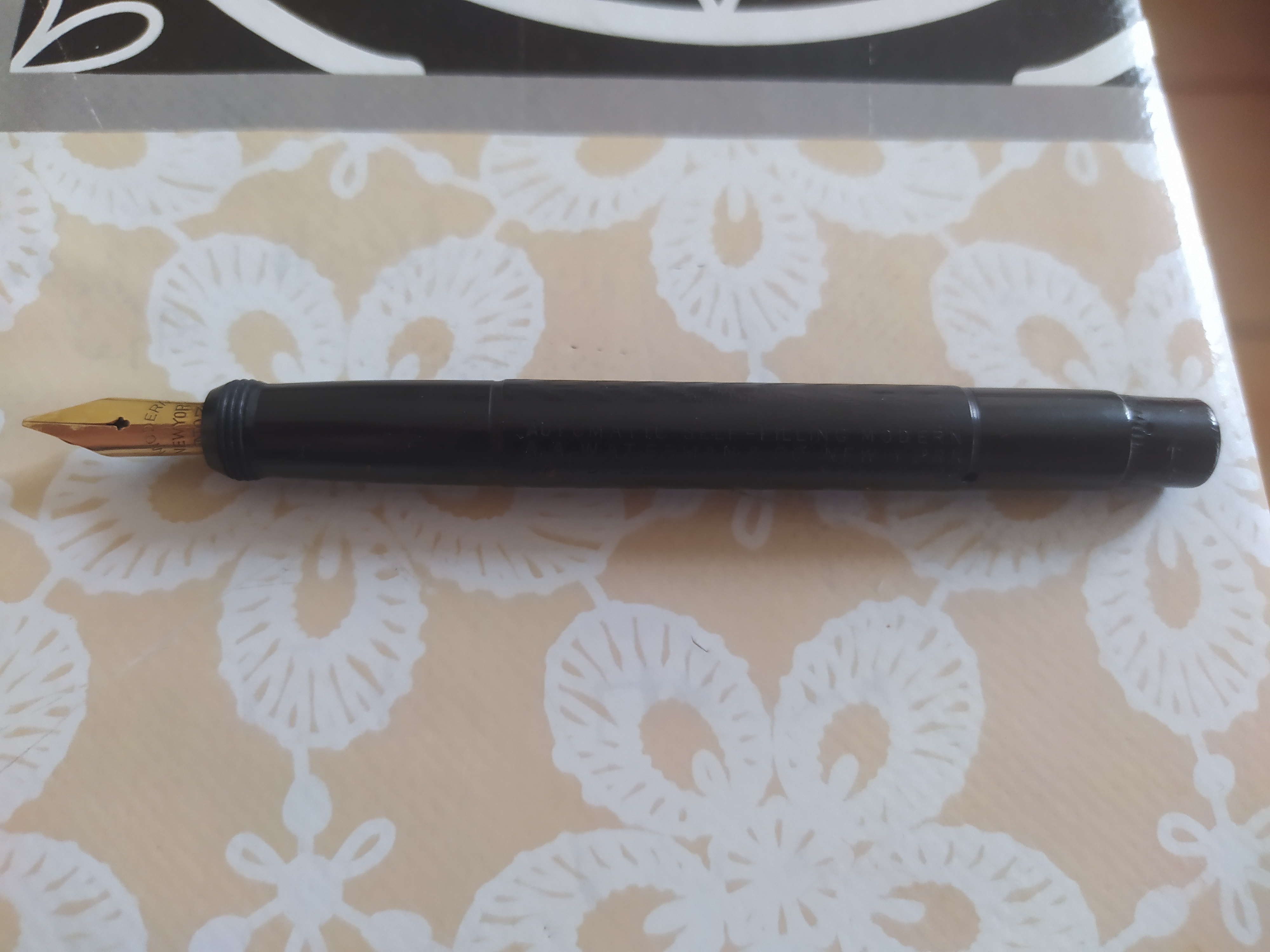 Certo l'uso del cognome "Waterman", anche se non presente sulla penna in presentazione (ed anche sul pennino ora mancante poteva esservi solo "Modern") era però sempre presente nelle pubblicità, per quanto defilato, e questo certamente non poteva sfuggire al colosso...