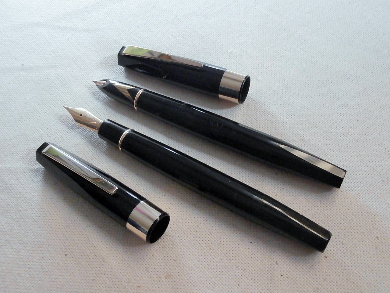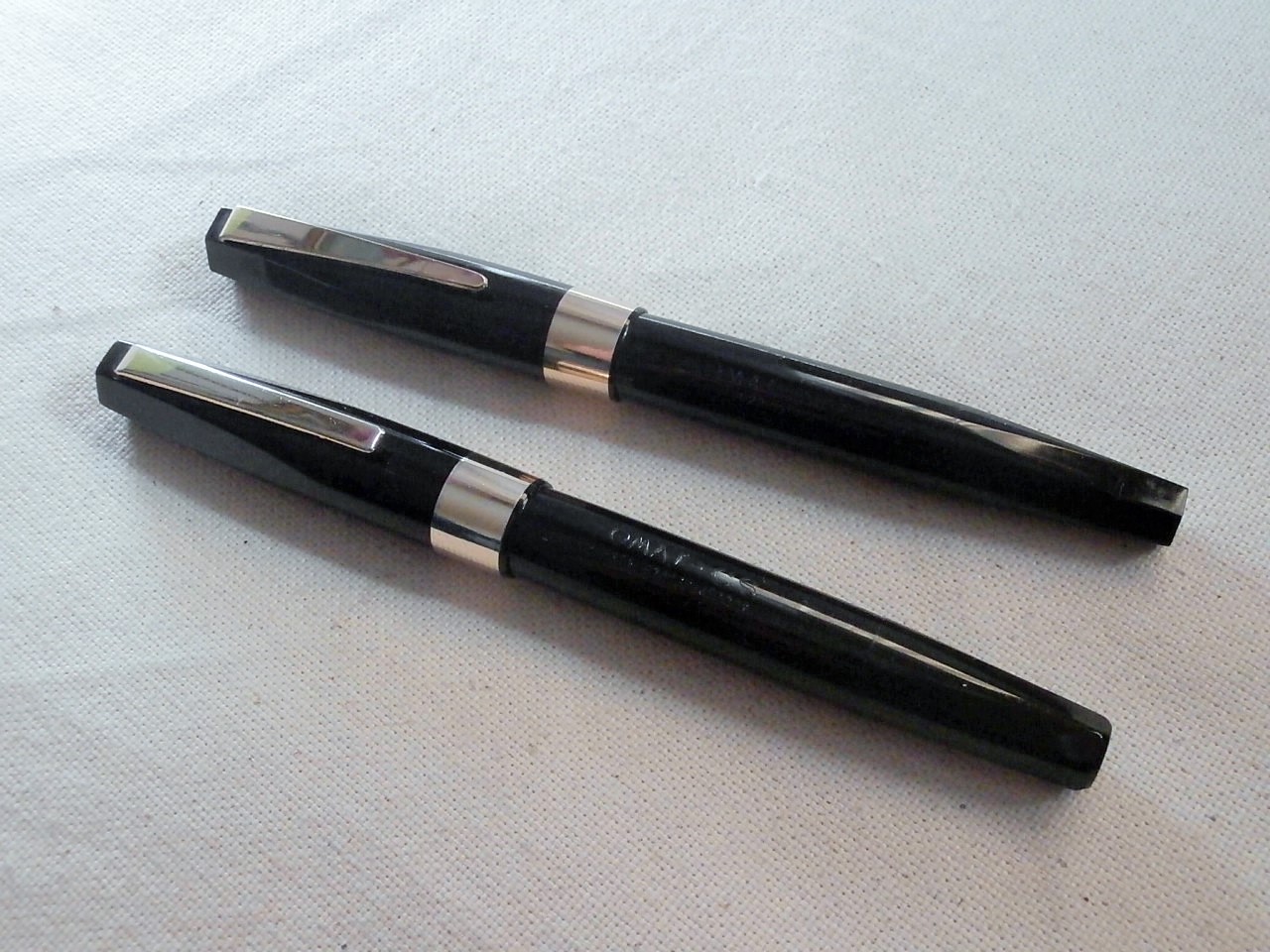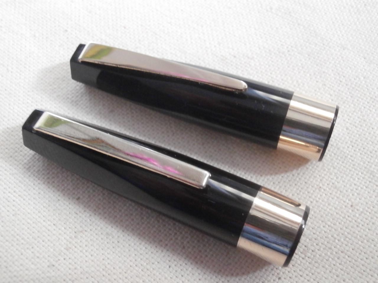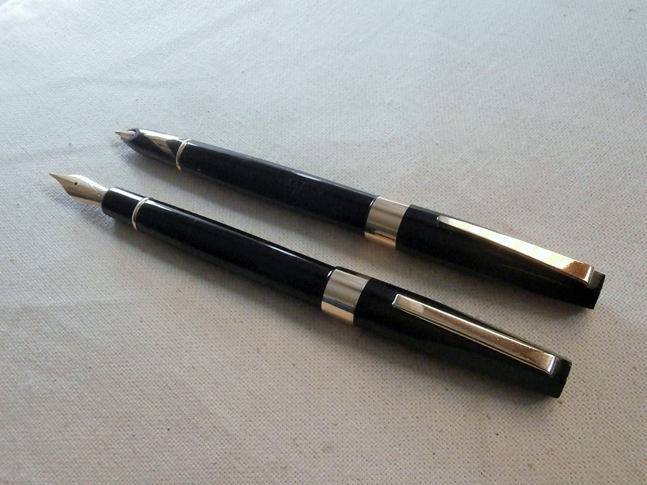 Entrambe nere, a stantuffo, si differenziano per la clip ed i pennini, tradizionale scoperto per una, reversibile per l'altra.